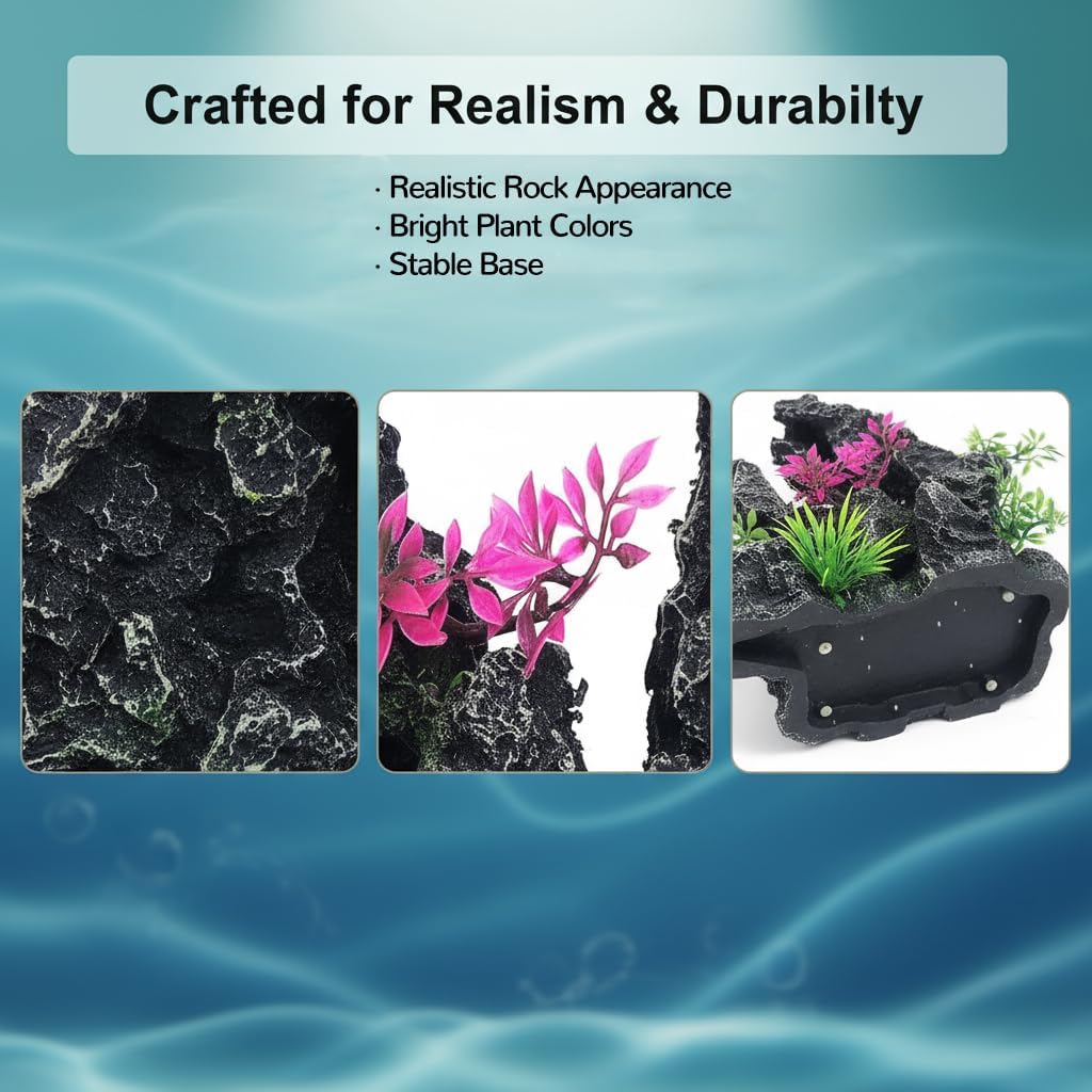 J-star Large Aquarium Rock Mountain Decor – Realistic Resin Landscape Ornament for Fish Tanks – Enhances Underwater Scenery, Easy to Clean, Safe for Fish