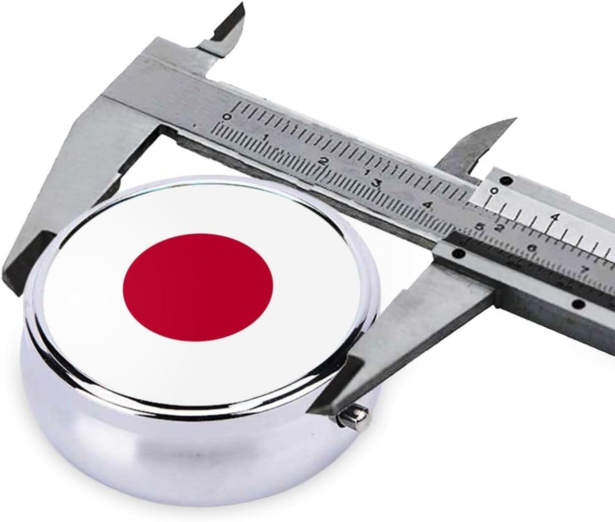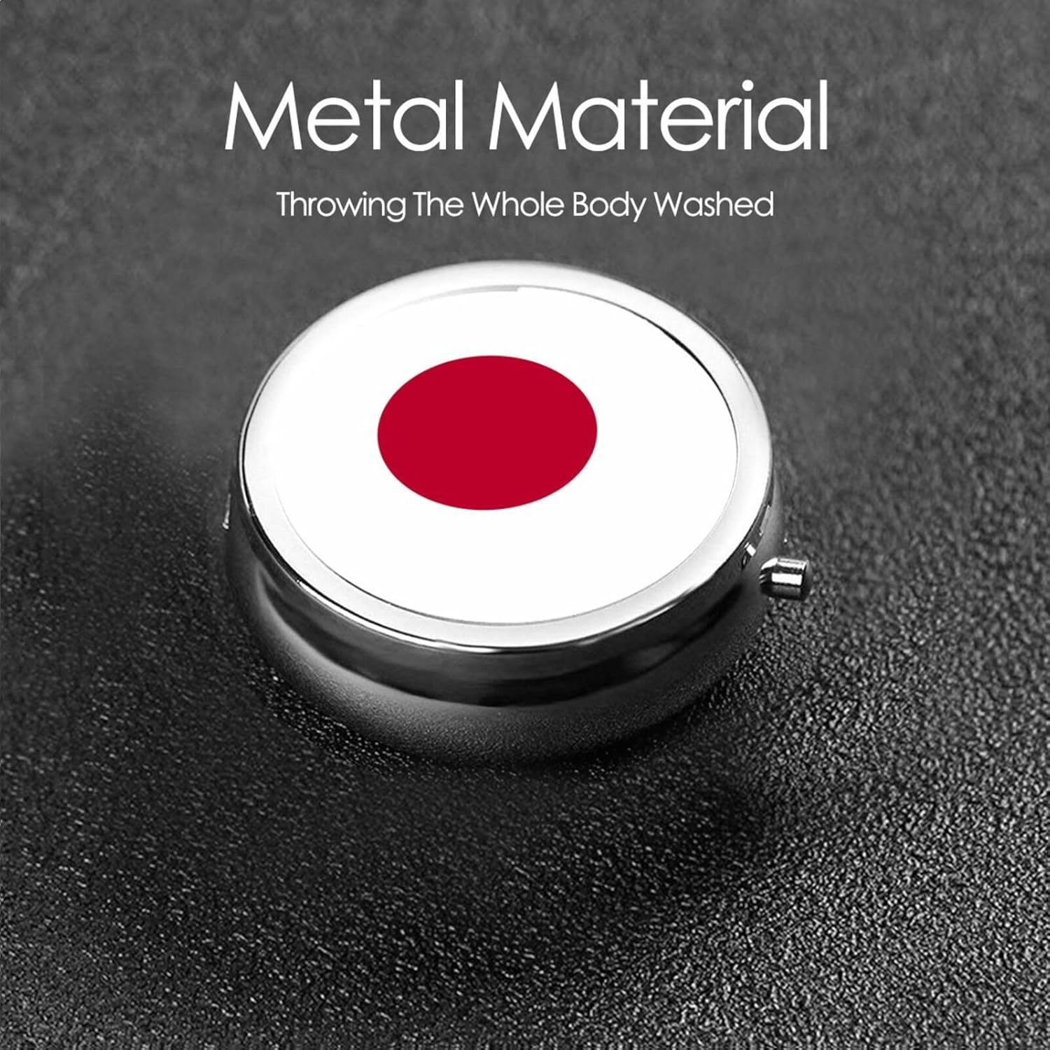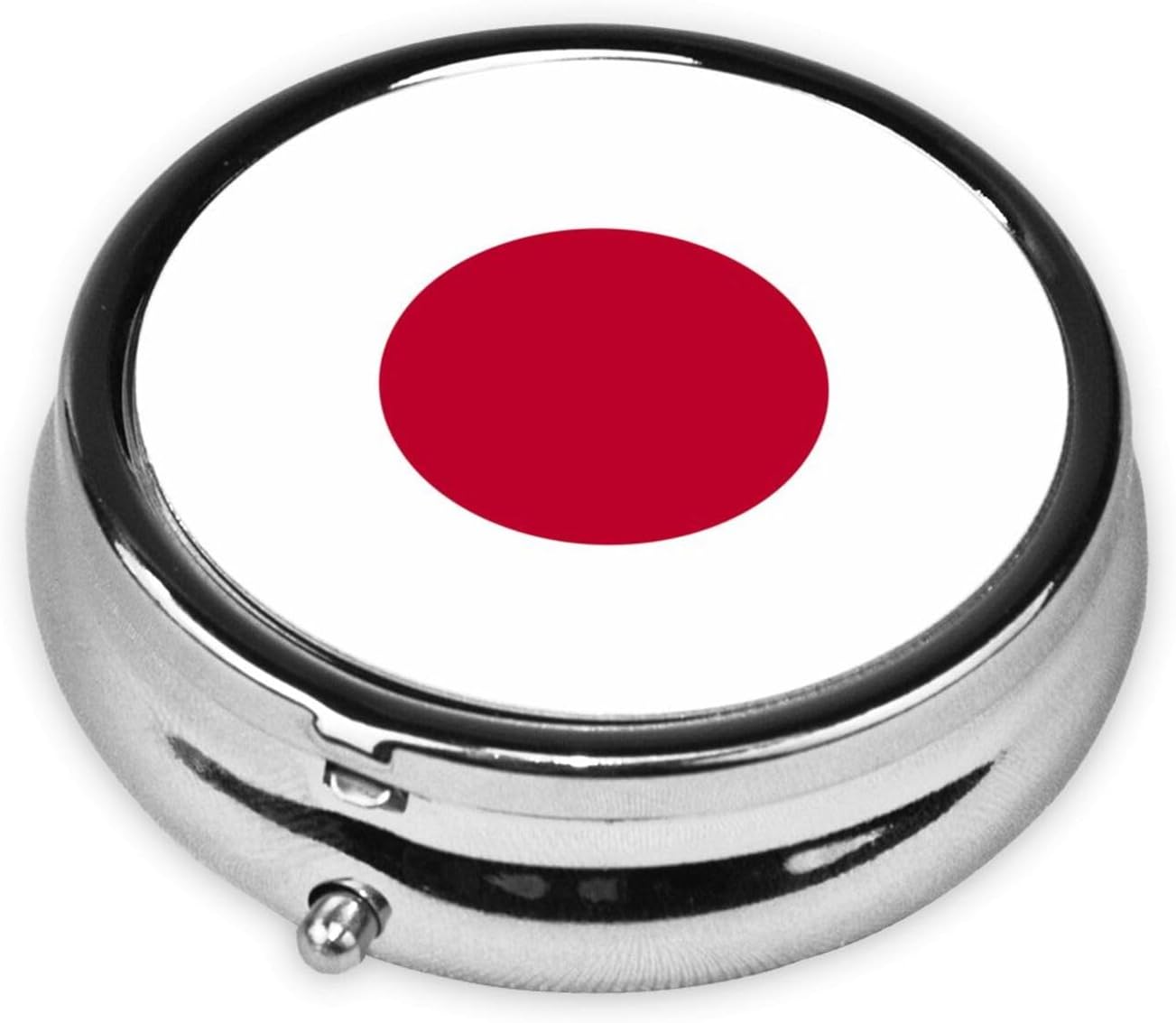 Japanese flag Stay organized and stylish with this Round Pill Box – a portable medicine storage container perfect for vitamins, supplements, fish oil, and more. Designed with a full-print exterior, this pill box is not just functional but also a fashionable addition to your daily routine. Made from durable electroplated metal iron, it offers a premium feel and long-lasting performance.