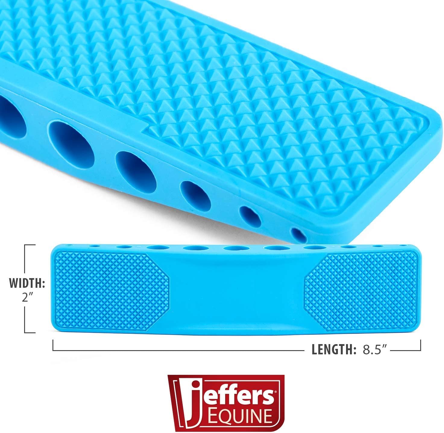 The Jeffers Rubber Groomer is a versatile grooming brush designed for horses, dogs, cats, and other furry pets. Made from durable rubber, this multi-purpose grooming tool helps remove dead hair, dirt, dandruff, and dried sweat. It’s ideal for daily grooming routines —whether you’re shedding a thick coat off a horse, detangling a cat’s fur, or brushing your dog after a walk. The ergonomic design fits comfortably in your hand for easy handling, making it a favorite among pet lovers and farm owners. Great for removing loose hair and cleaning muddy paws, this rubber groomer also works as a gentle scrubber for use during bath time. Perfect for use on short hair or thick coats, it’s a helpful deshedder and de-furminator for maintaining healthy coats. Easy to clean with soap and water. Works well on pets like huskies, golden retrievers, labs, beagles, poodles, and even livestock like goats or ponies. Compact and lightweight, it fits well in your grooming kit, tack box, or barn. Dimensions: 1″H x 2″W x 8.5″L. Color Blue