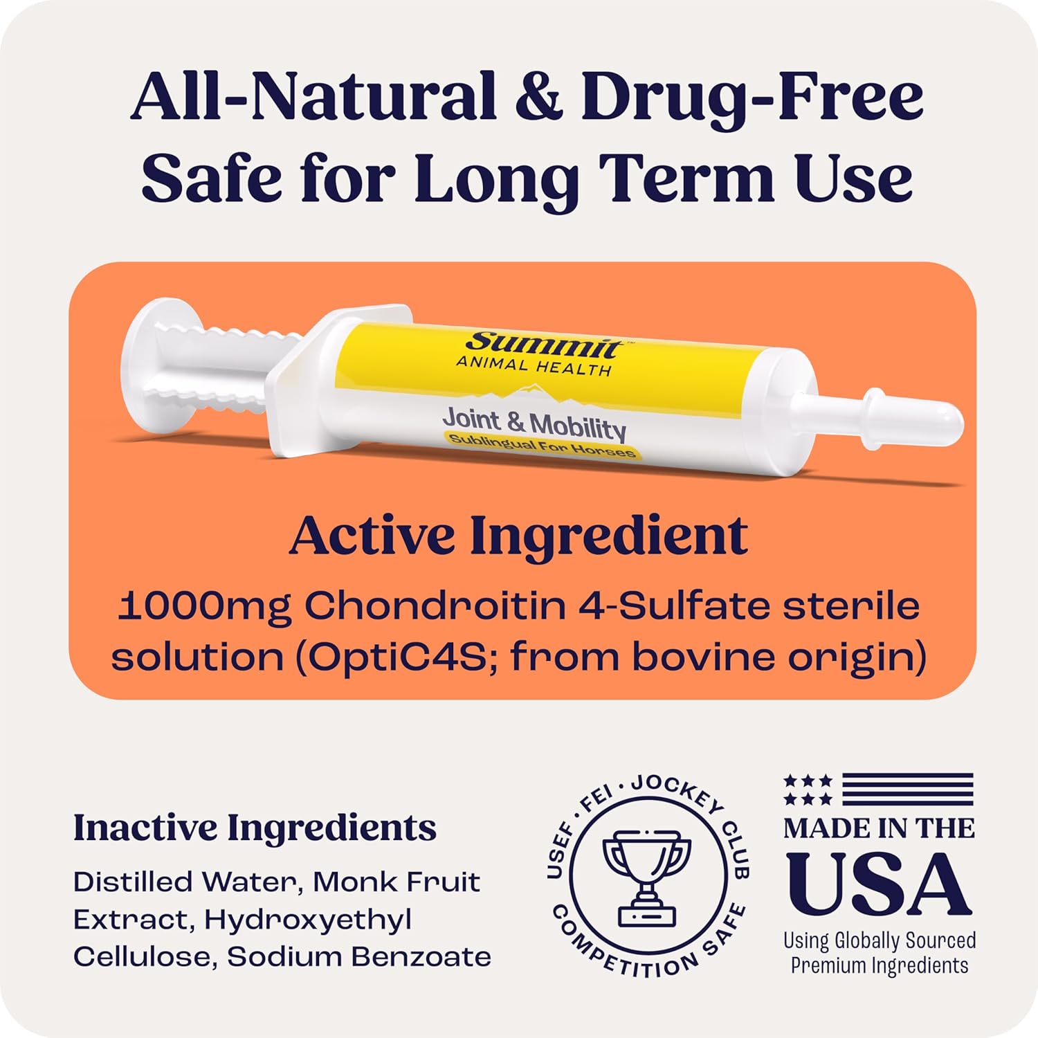 High-Purity Chondroitin 4-Sulfate: Each dose contains over 99% pure pharmaceutical-grade chondroitin 4-sulfate (bovine origin), essential for maintaining healthy cartilage and joint function, thereby enhancing your horse’s mobility and comfort.