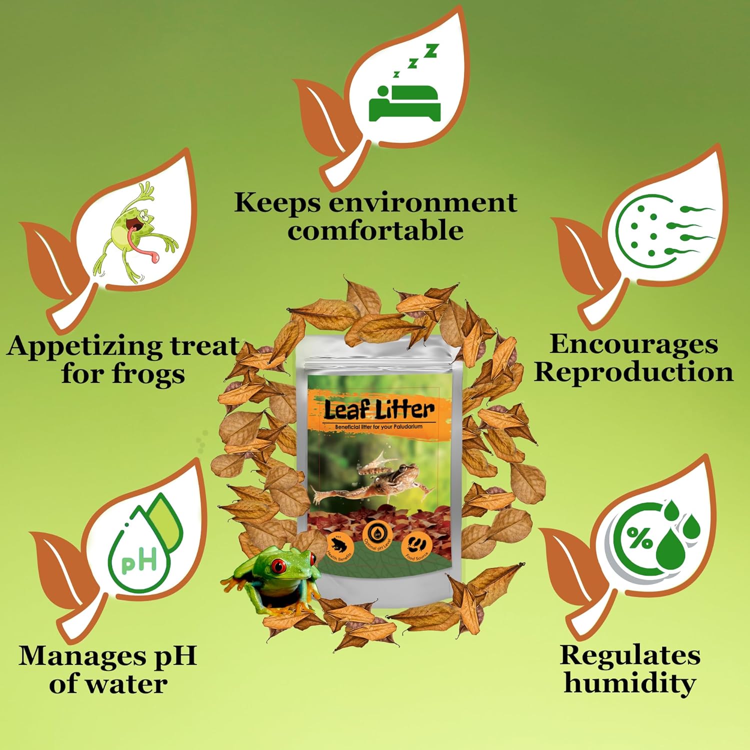 JOR leaves benefit your pet frog in many ways. They help maintain humidity and shield your pet’s skin from drying soil. They’ll add minerals and goodness to the soil for your frog’s food to feed on and your vivarium’s plants. Most importantly,