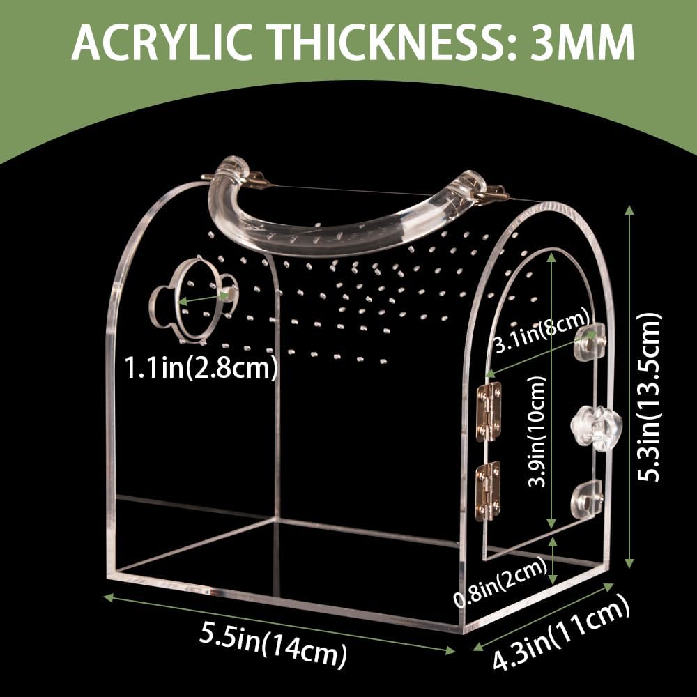 Jumping spider accessories top is equipped with handle,making it convenient for taking your small animals out to play.This versatile enclosure is perfect for various reptiles and insects, including turtle, snail, hermit crab enclosure, arboreal tarantula enclosure, bug terrarium, and more.