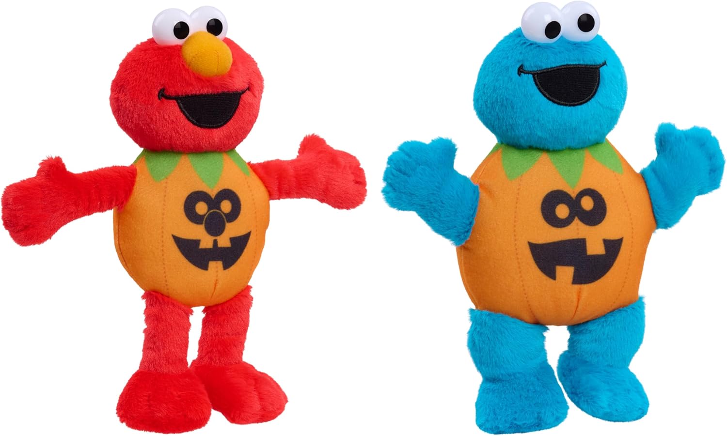 Just Play Sesame Street Elmo & Cookie Monster Small Halloween Plush 2-Pack, Sustainable Stuffed Animal, Soft Plushie, Kids Toys for Ages 18 Month