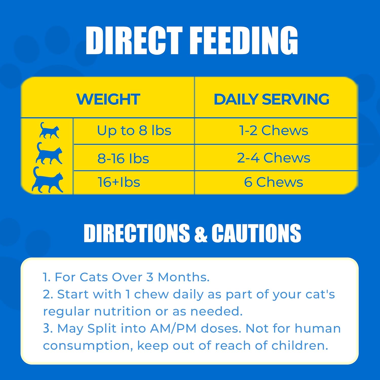 Great Value, Long-Lasting Supply: Each bottle contains 300 chews (180g), suitable for cats of all breeds and ages. Adjust the dosage as needed for lasting relief.