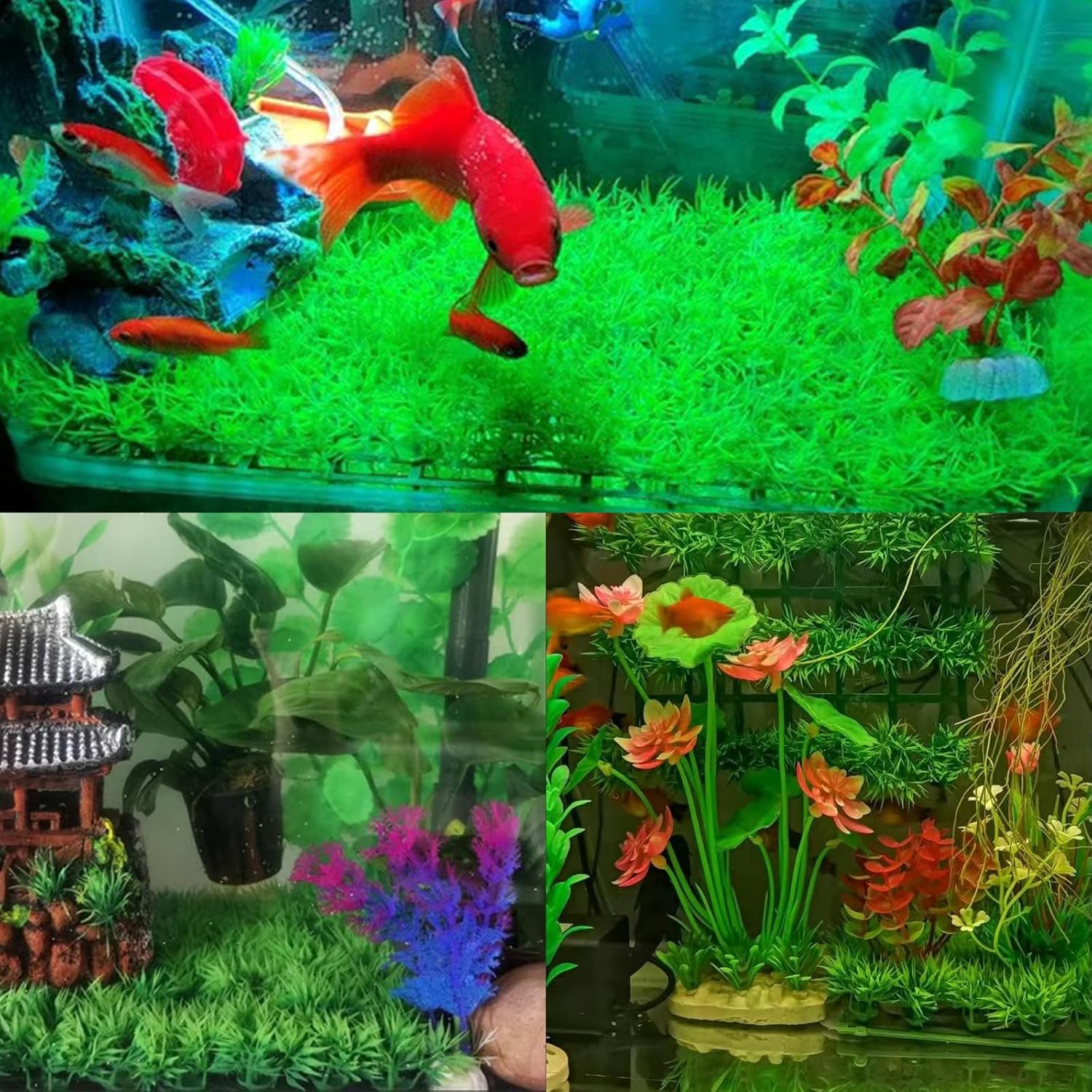Bottom view of fish tank: These simulated aquarium grass mats not only add a touch of natural green scenery to your fish tank, but also provide a safe hideout for your fry and reduce their survival stress.Lifelike aquarium grass,exactly like real aquatic plants, decorate your fish tank as an underwater garden.