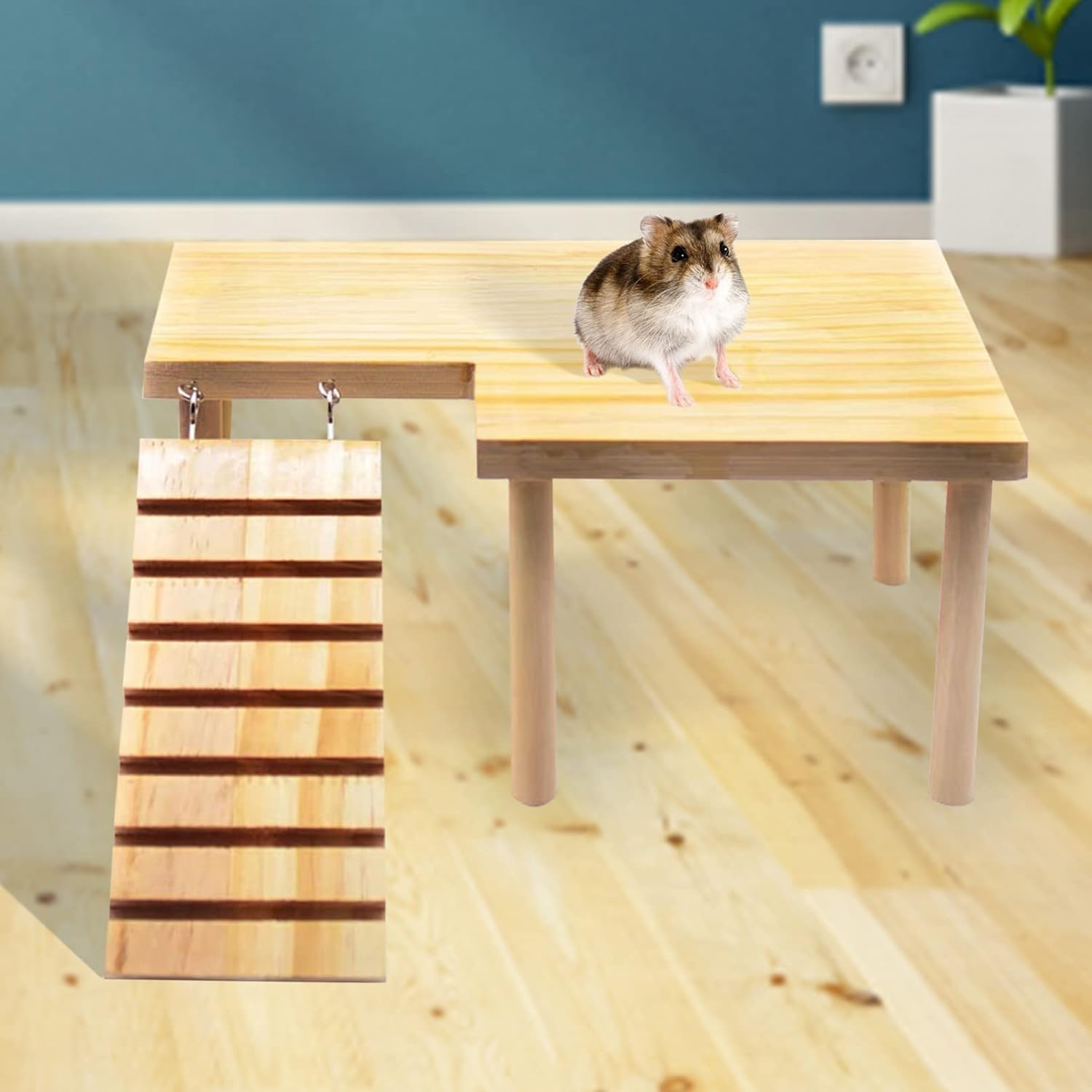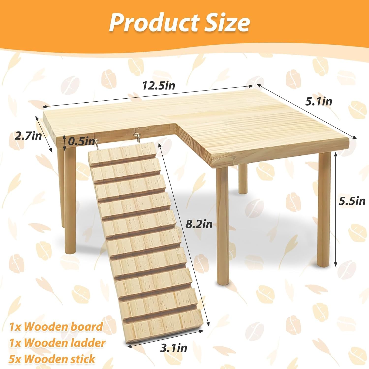 Hamster Platform Set: Each package contains 1 wooden hamster platform, 1 wooden ladder bridge, suitable for hamsters, guinea pigs, hedgehogs, chinchillas and small animals