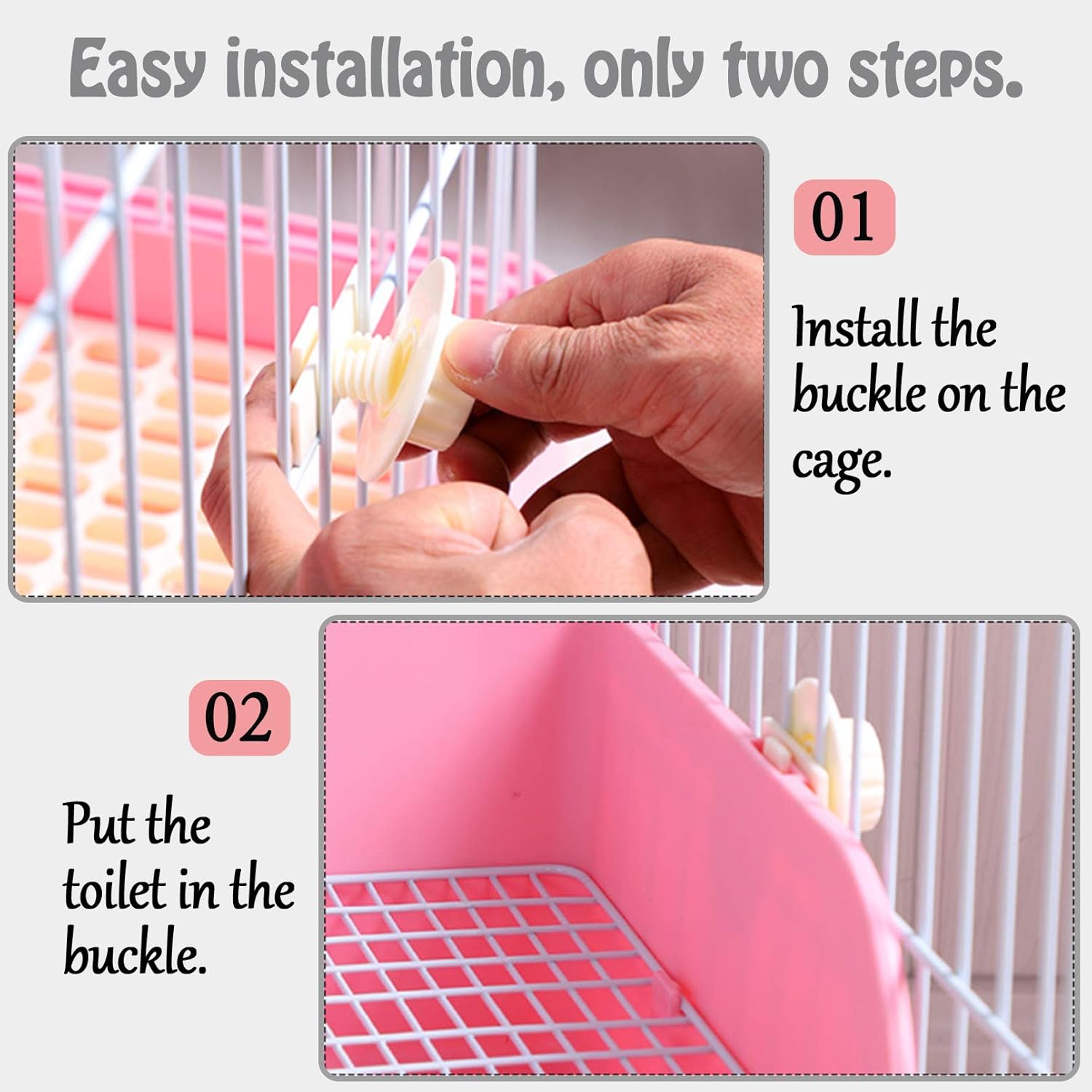 [HUMANIZED DESIGN] Smooth guardrails on both sides of the litter pet toilet can prevent urine from splashing to other places and keep the cage clean. Comes with attached rotation button to hold the litter tray securely to your cage. It can also prevent small animals from dragging the toilet, overturned litter box and scattered litter