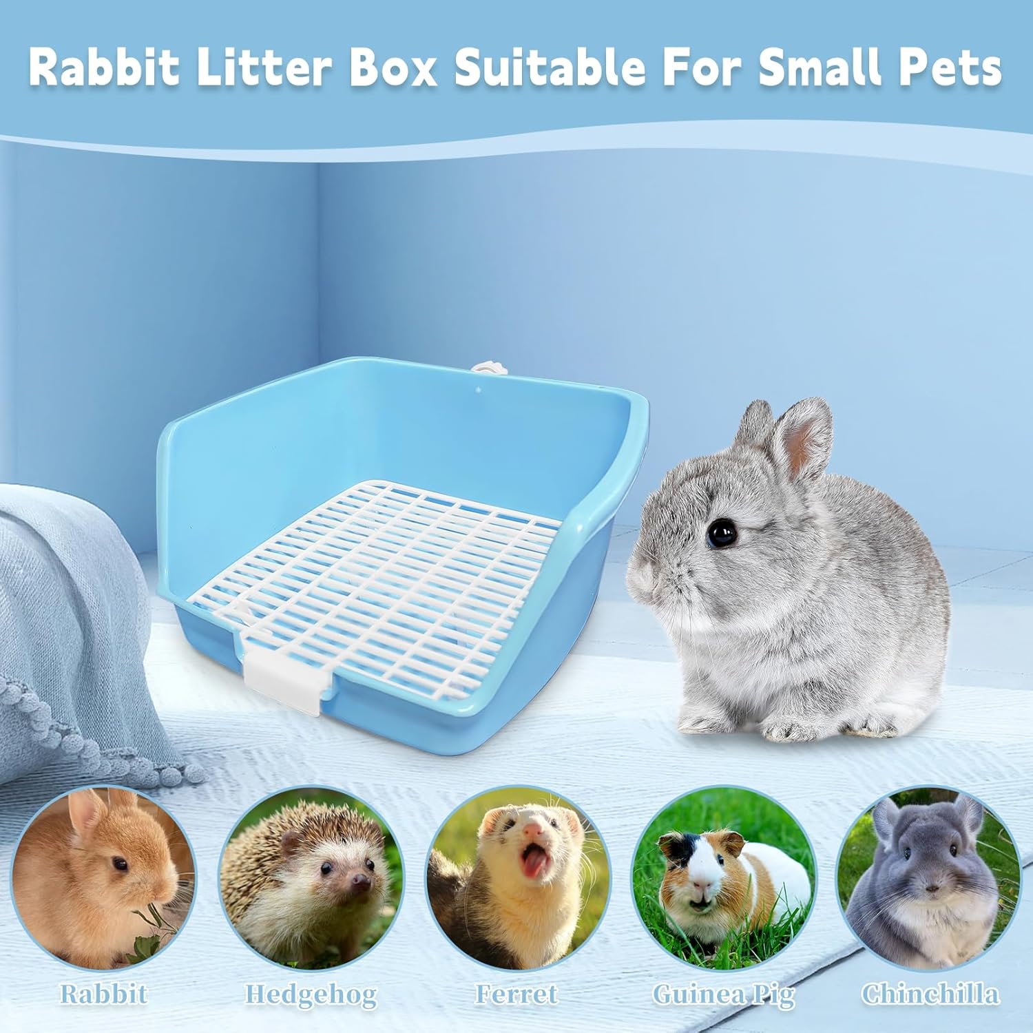 kathson Rabbit Litter Box Toilet, Plastic Square Bunny Corner Litter Box, Pet Potty Trainer Box for Small Animal Guinea Pig Ferret Hamster Hedgehog (Blue)