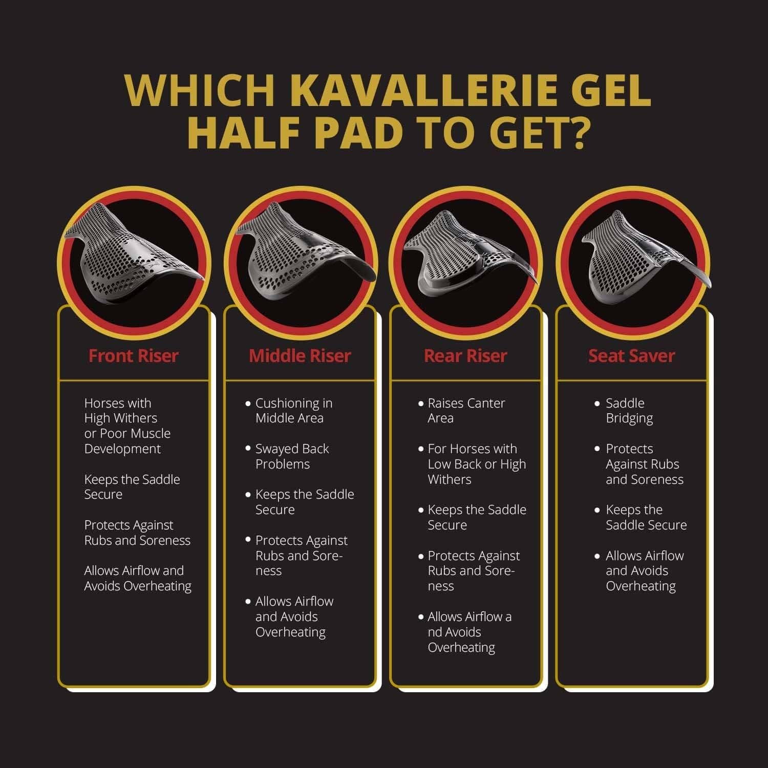 All Horses Need Love And Attention. Four specifically designed gel saddle pads to choose from: Seat Saver, Middle Riser, Rear Riser, and Front Riser. Each has specific features and use. Every back condition that your horse may suffer from, we have the gel saddle pad to help you and your horse to have the most comfortable rides.