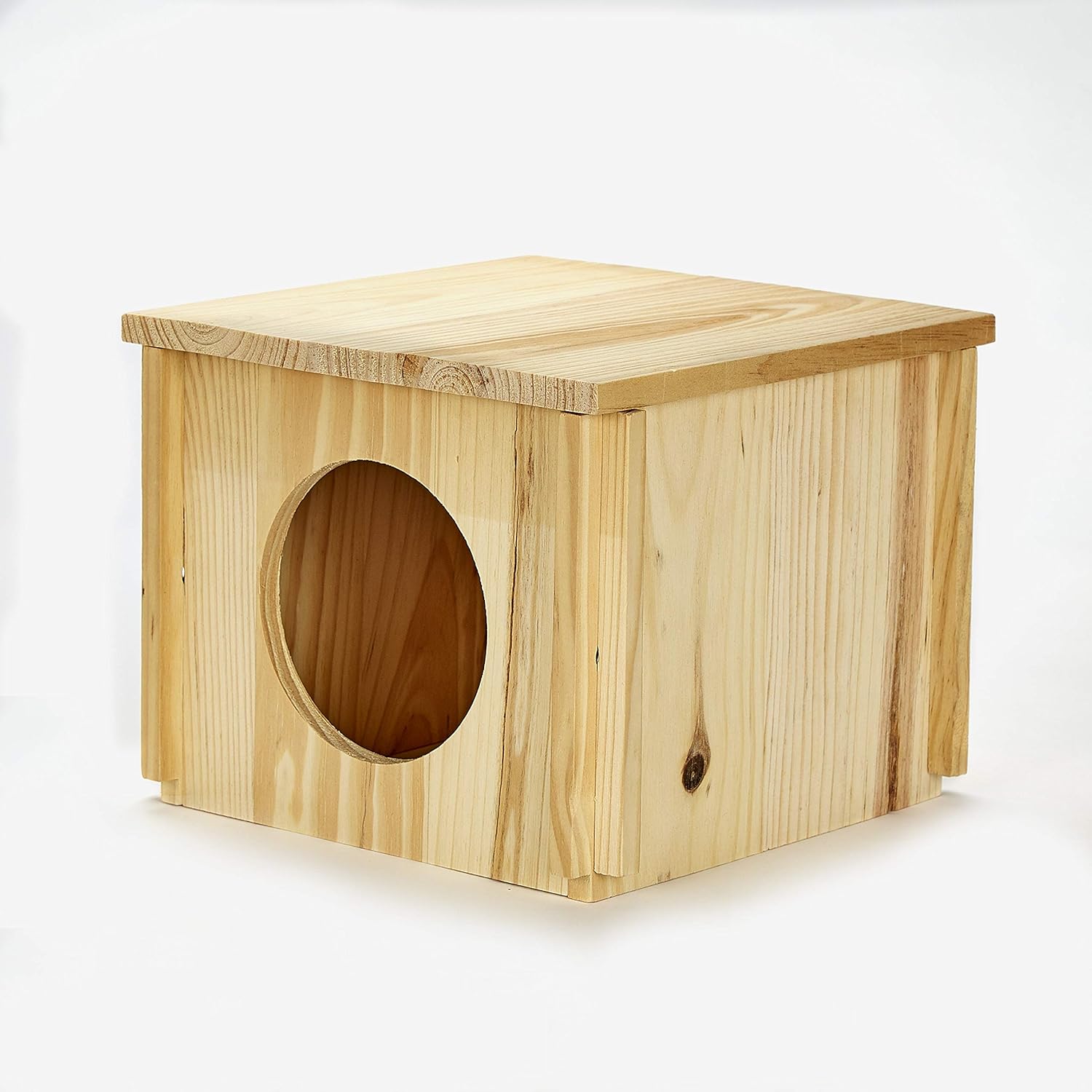 Got this to use as a nest for my parakeets. I like the fact that it’s easy to take apart to clean or put away when not needed. Also like that I can make my own base for it and that is has a large opening. It was easy to put together. Comes with clear picture instructions but is easy to figure out without them. Seems well made and doesn’t smell strongly. Doesn’t seem to have many splinters but I’ll probably still sand it down to be safe. Would buy again if it’s on sale for $10 like it is now. Most parrot nests are $20 or more and are a pain to clean out. I added a picture of the only real flaw I found which was a corner that looked chipped but it doesn’t affect anything it’s just cosmetic. Size wise I’d say it’s too small for anything bigger than a single guinea pig if even that. Tall enough for a chinchilla but not really wide enough for anything other than a single chinchilla to sleep in. Perfect for a Syrian hamster, rats, gerbils. I’ll try to update the post if/when my parakeets start using it.