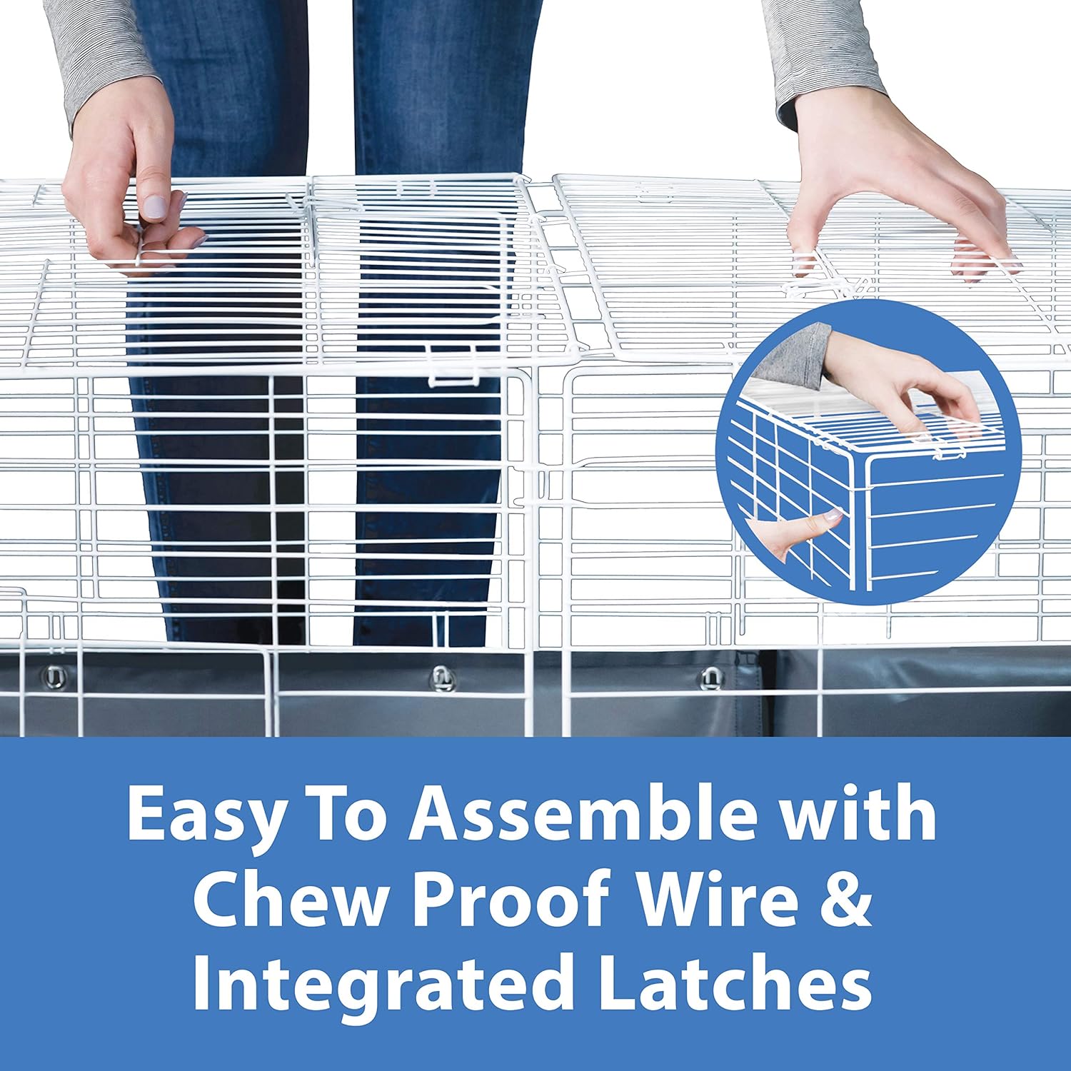 Easy to assemble with chew-proof wire and integrated latches