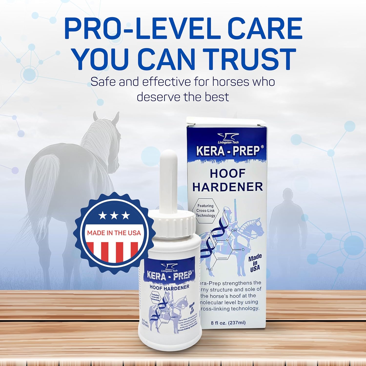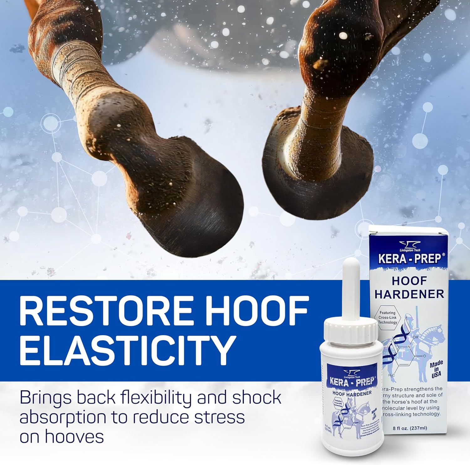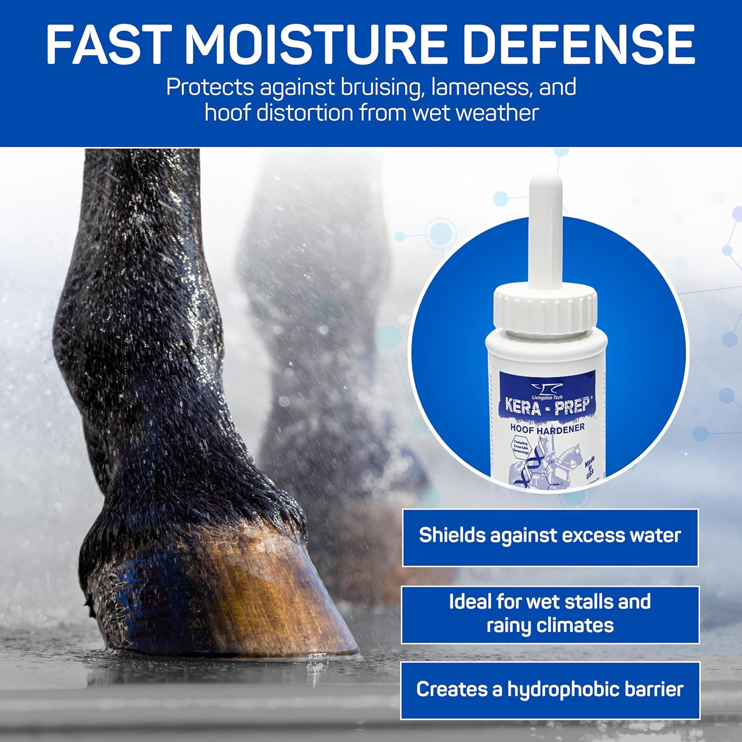 MOLECULAR-LEVEL STRENGTHENING – LivingstonTech Kera Prep Hoof Hardener acts as a hoof conditioner for horses, using cross-linking technology to reinforce hooves from the inside out. It helps support the structure of the hoof wall and sole for better durability through daily wear.