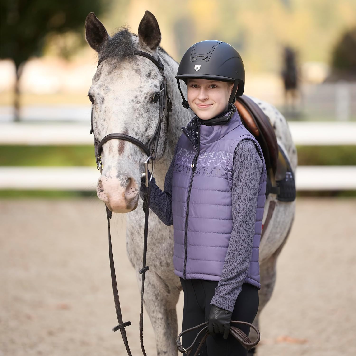 Kerrits Kids Ride The Wind Reversible Quilted Equestrian Vest – Warm Kids Horse Riding Vest for Winter, Fun Horse Print