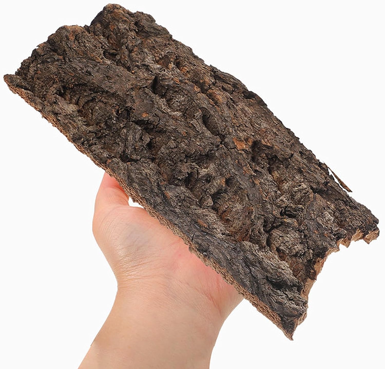 – Color: Light Brown- Size range: Approximately 5.11 x 1.49 x 0.39 inches (each piece varies)- Each set includes 4 pieces with random shapes for a unique terrarium landscape- Made from safe, natural wood materials suitable for reptile habitatsUsage & BenefitsThese cork bark decor pieces serve as climbing platforms and hiding spots, perfect for reptile terrariums and pet enclosures Use them to create naturalistic setups for home or exhibition use, ideal for reptile owners looking to enrich their pets’ environmentIdeal for use during daily terrarium maintenance, pet interaction, or special occasions such as reptile shows and home reptile breeding setups These decorations do not water quality or other reptiles housed togetherAdditional InformationBecause these tree bark pieces are natural, each one varies in shape and weight, adding an authentic touch to your terrarium landscape Their durable but lightweight construction ensures easy placement and repositioningPackage Including4 x Tree Bark Decors