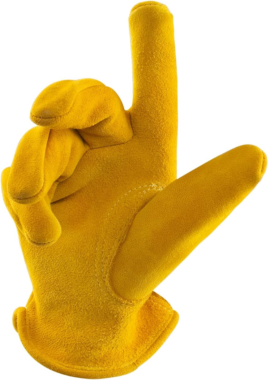 I don’t know how many times I’ve had to buy my son gloves and they just not hit the mark when it comes to sizing but these actually did the job. They have a great weight to them and I assume that this is actual deer skin considering the yellow color on the inside of the palm. He was able to help me with yard work just fine and for reference he was about nine when I bought them for him he’s 10 now and he’s using them just fine. They have great grip and durability on them and they are slightly waterproof but not 100% waterproof as leather typically never is. He never complained about anything poking him through the gloves so they work just fine.