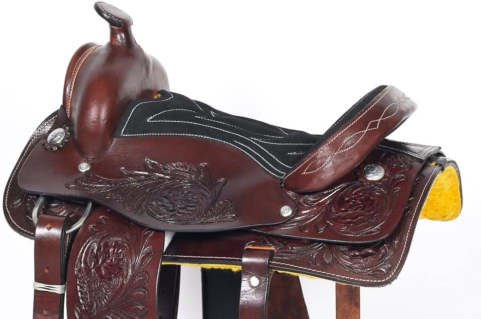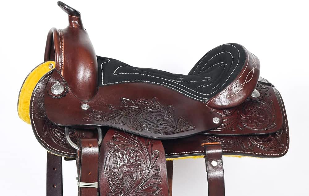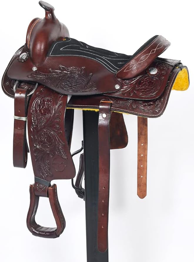 Features: This Horse’S Saddle Features A Gorgeous Hand Tooled Design In A Hand Finished Dark Brown Color. Its 5 Inches Gullet Size Horses. 8 Inches Black Rought Out Seat, 5 Inches Cantle, 20-26 Inches Stirrups, 17 Inches Skirt Length, Weight, 10 Lbs(Approx.).