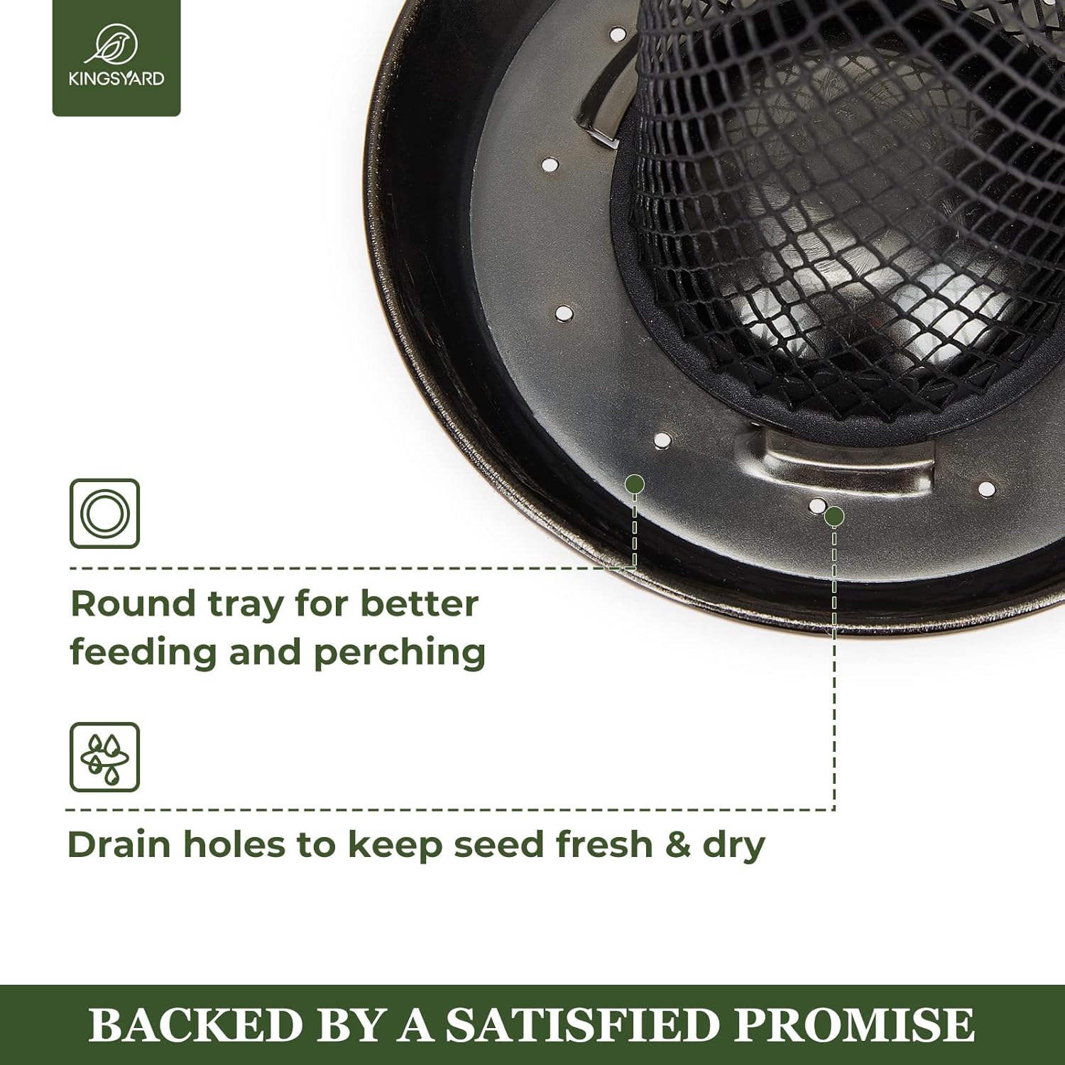 【Great for Clinging & Perching】- The mesh surface makes the perfect landing place for clinging; 360-degree seed tray encourages perching and feeding; The drainage holes on trays help keep seeds dry