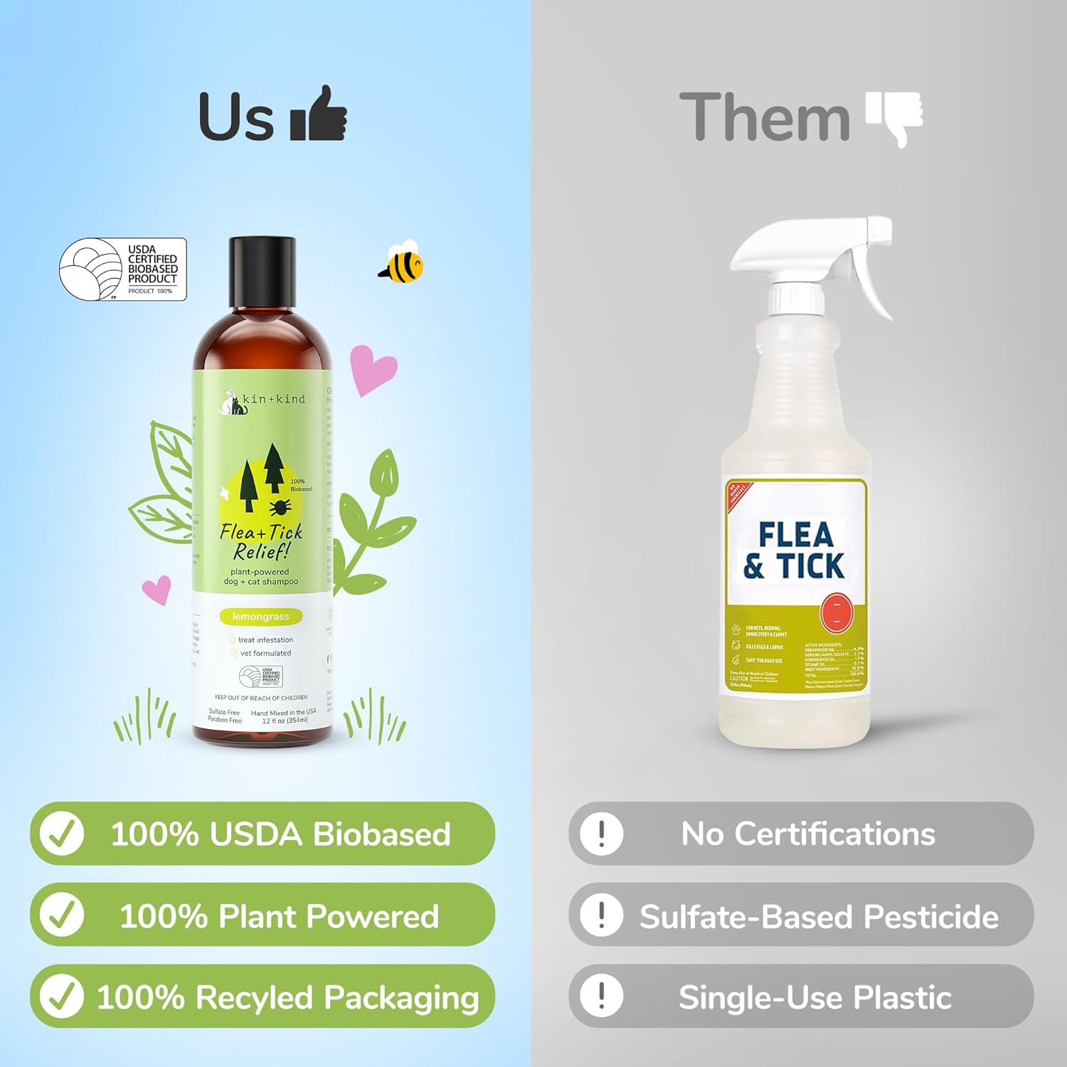 kin+kind Flea and Tick Shampoo for Dogs & Cats Vet Formulated – Plant Powered, Safe and Effective Dog and Cat Shampoo – Lemongrass Scent – Prevent Fleas and Ticks – Made in USA 12 fl oz
