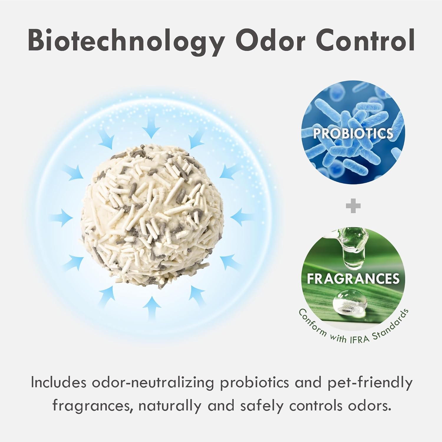 ADVANCED ODOR CONTROL AND WATER SOLUBILITY: Experience advanced odor control with our exclusive probiotic and activated carbon formula, ensuring a fresh and pleasant atmosphere for both you and your feline companion. Plus, our cat litter is crafted from food-grade ingredients, offering an environmentally friendly and biodegradable solution. It even dissolves quickly in water, making cleanup a breeze.