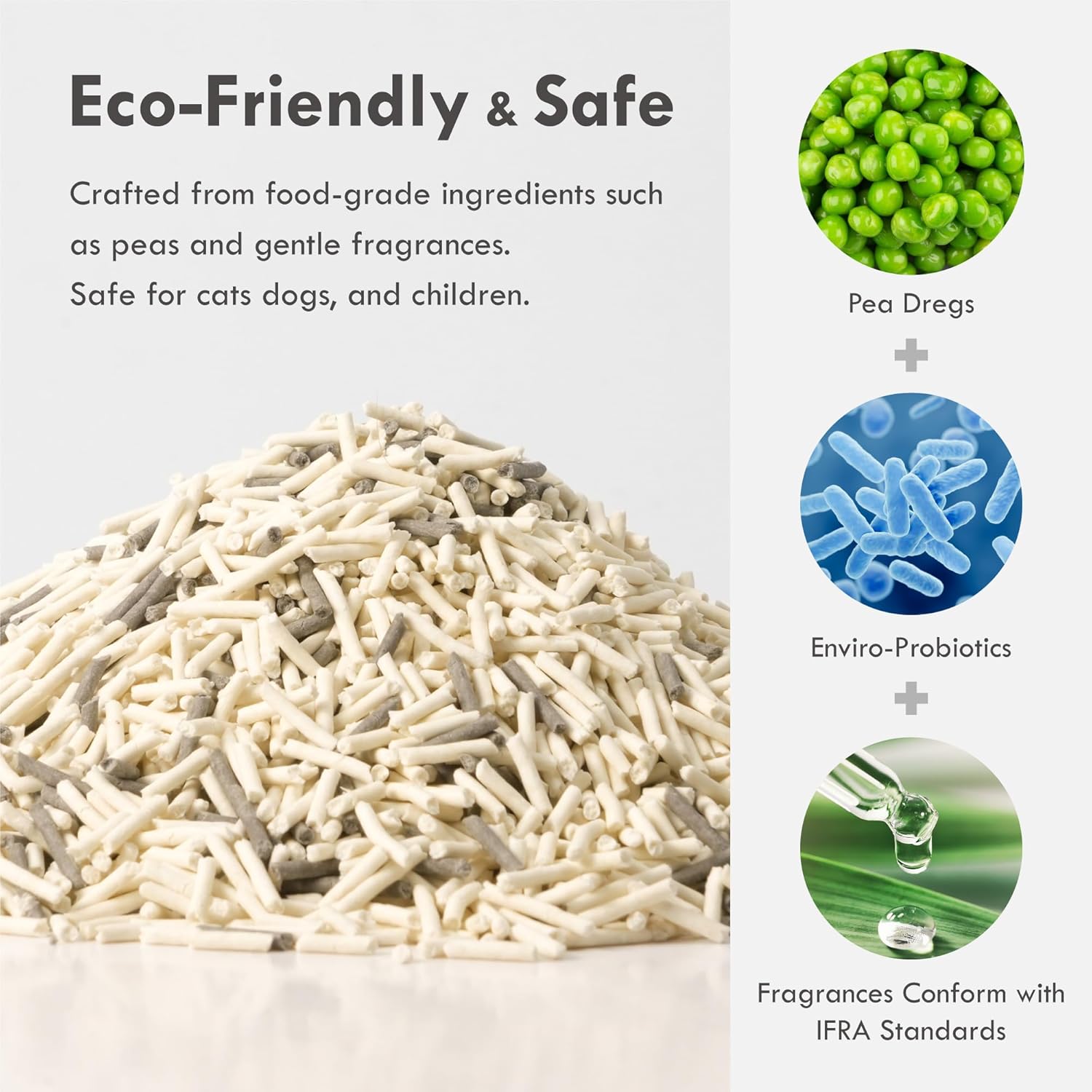 NATURAL FOOD-GRADE INGREDIENTS: Crafted from premium pea fiber and starch, our litter is an embodiment of our commitment to your pet’s well-being and the environment. Trust in a cat litter made entirely from natural ingredients.