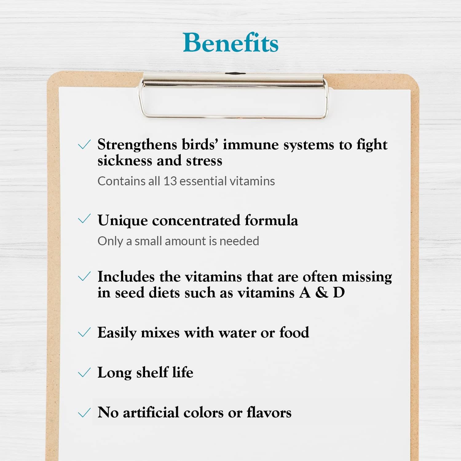 Includes the vitamins that are often missing in seed diets such as vitamins A and D