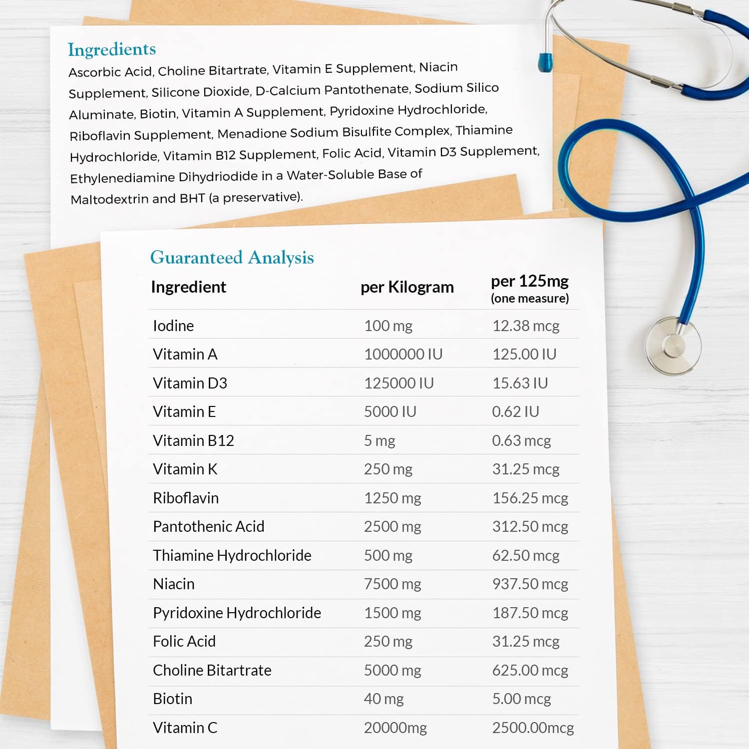 Contains all 13 essential vitamins, vitamin C, and iodine