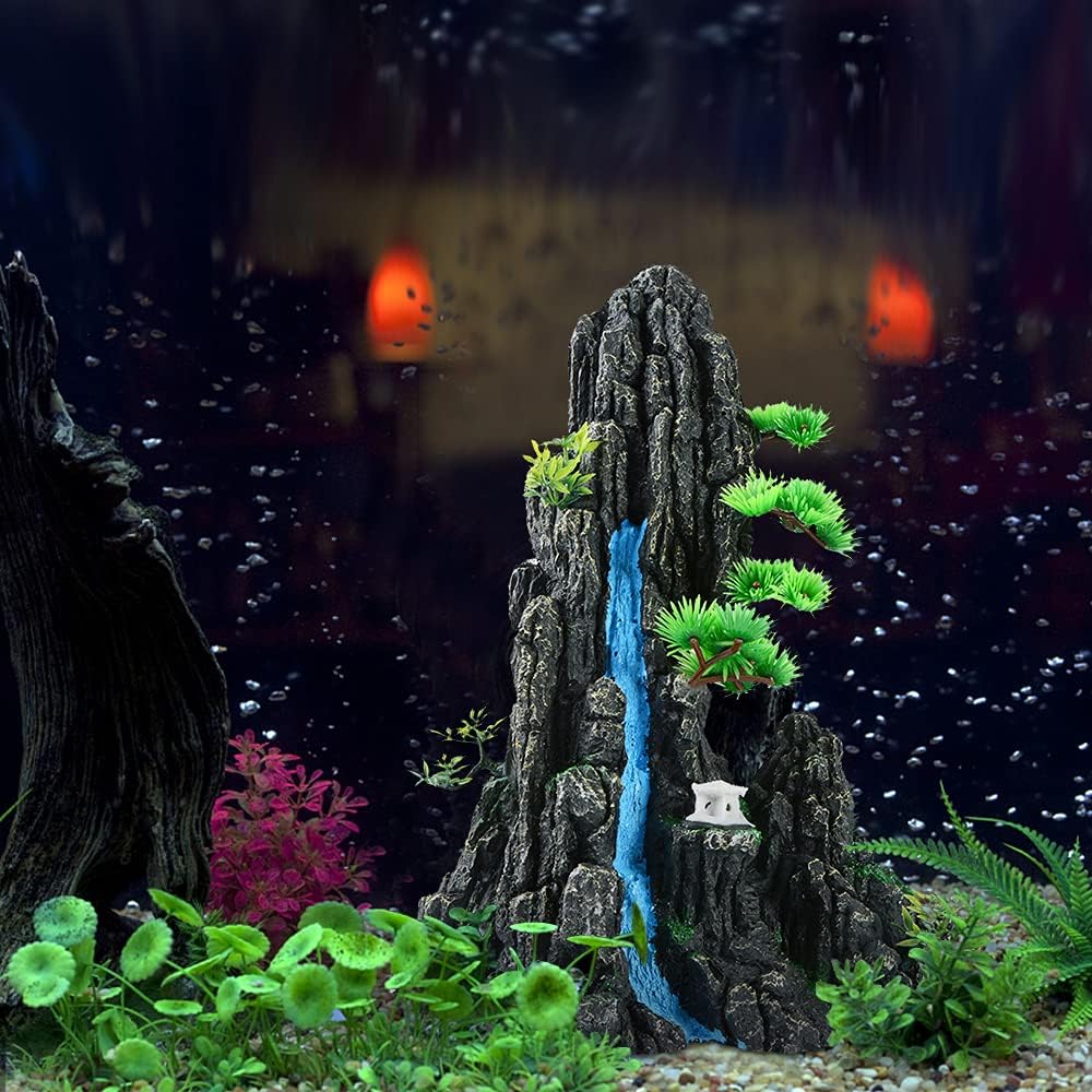 Large Fish Tank Decoration: With a small gazebo, trees and a waterfall, this mountain view stone offers the natural environment feeling, change your aquarium into a beautiful scenery. feaures lifelike look, the decoration will be a great addition to any tank.