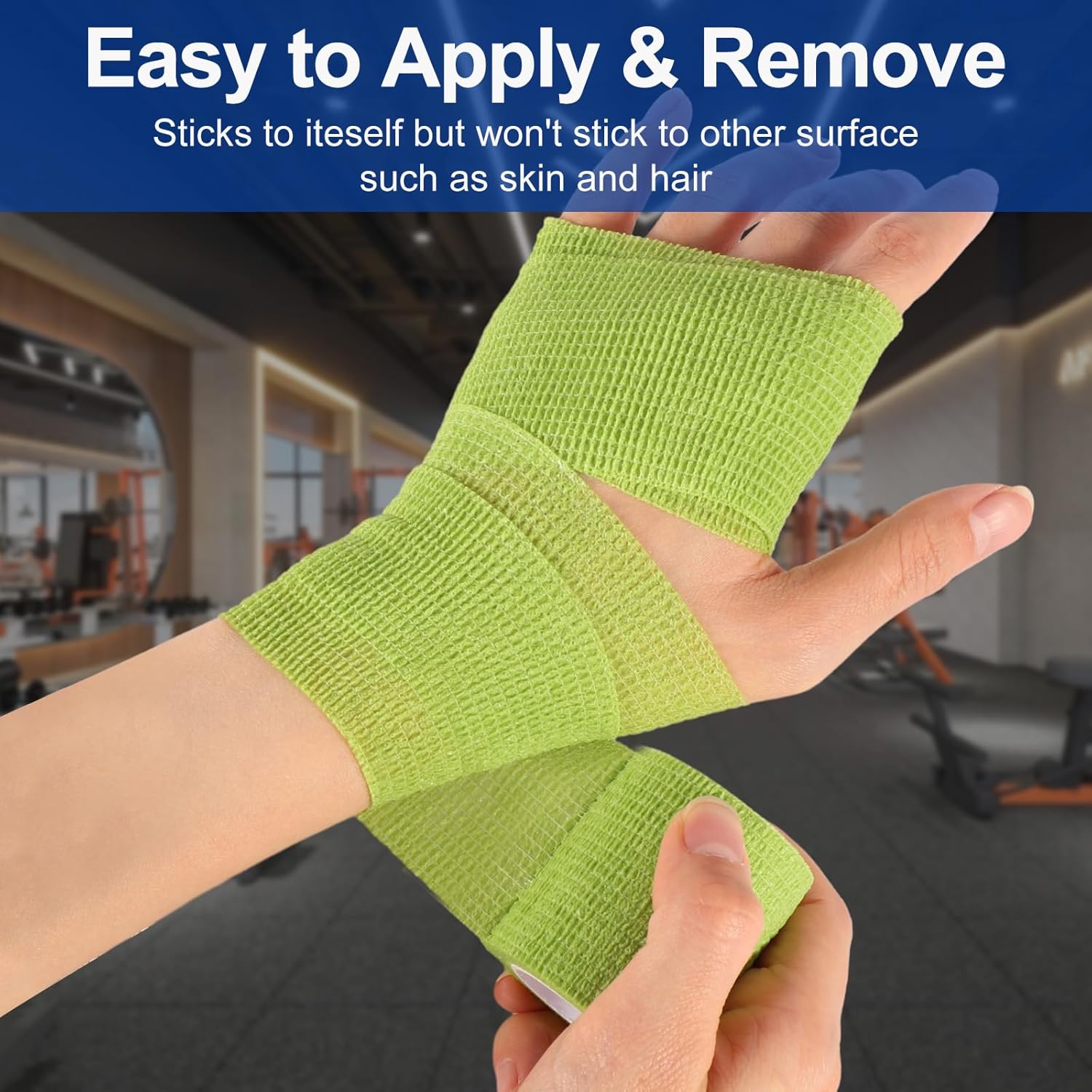 【Strong Self-Adhesive & Easy Tear】 No pins or tape needed! Vet wrap sticks securely to itself (not skin/hair) and tears by hand. Perfect for athletic sports tape and first aid medical emergencies