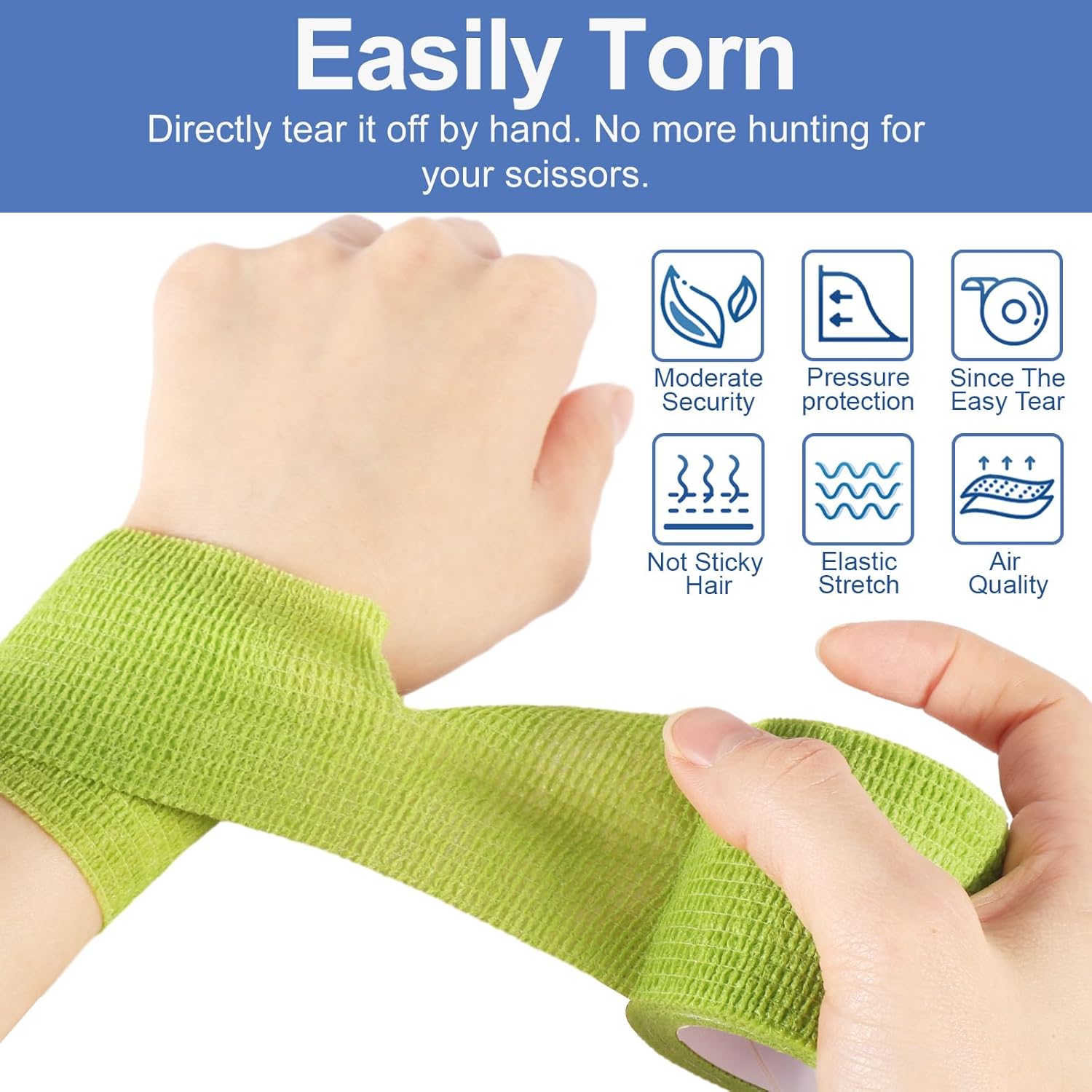 【Breathable & Water-Resistant】 Safe for sensitive skin and pet bandages, this cohesive bandage wrap resists water while reducing swelling. Hand-tearable, no scissors required