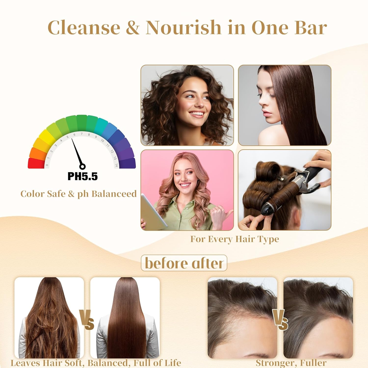 💧 Gentle & pH Balanced for All Hair Types: This bar shampoo and conditioner is free from sulfates, artificial fragrances, and dyes. With a perfect pH of 5.5, it’s gentle on the scalp and suitable for all hair types, including color-treated and damaged hair. Whether you’re looking for a shampoo bar for gray hair or an everyday cleanser, this bar is designed to repair damage and prevent split ends