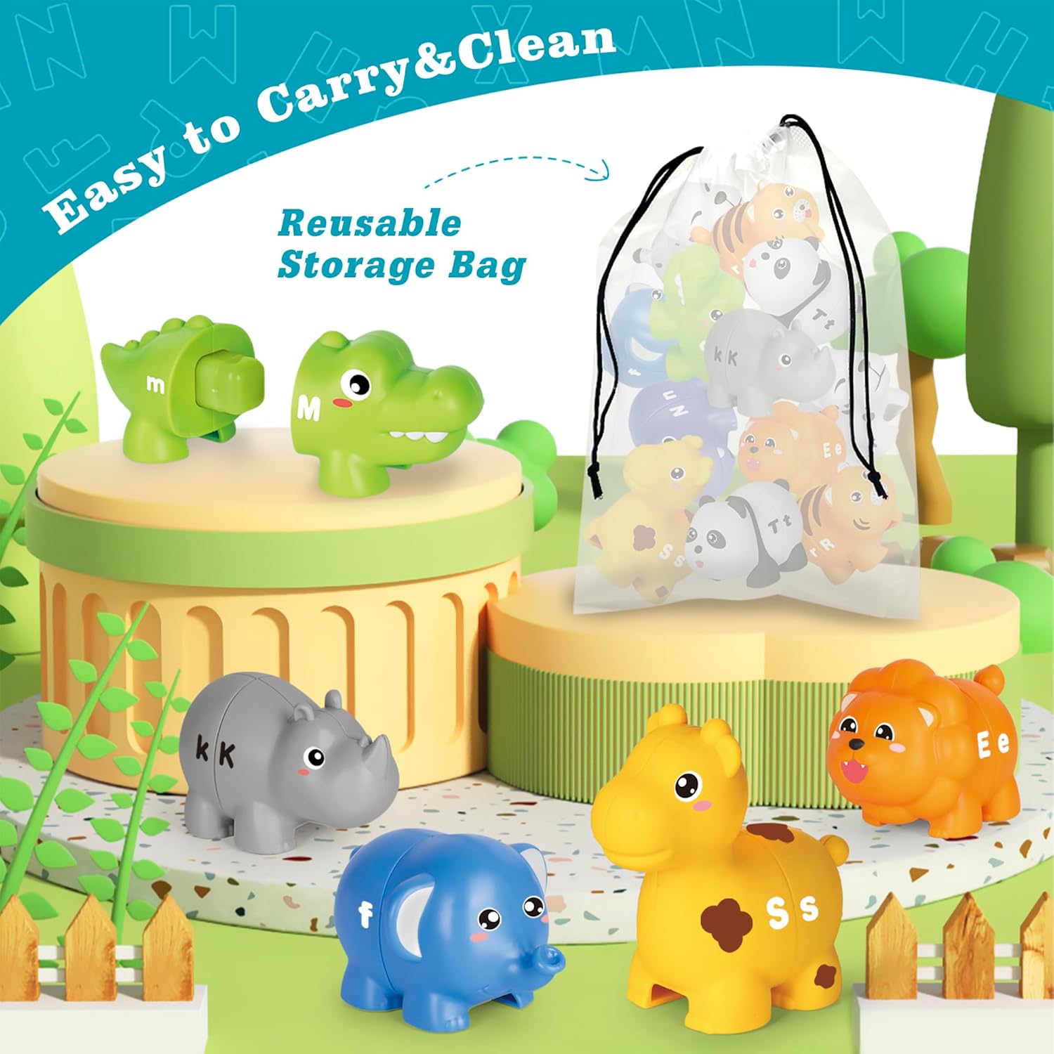 🐘 【10 Unique Wild Animal Pals – Alphabet Adventure!】Meet your kid’s first safari squad! 26 colorful alphabet animals packed with favorite creatures like Giraffe and Elephant – each critter has both capital and lowercase letters for double the learning fun. Comes with a drawstring bag for easy cleanups after jungle expeditions!