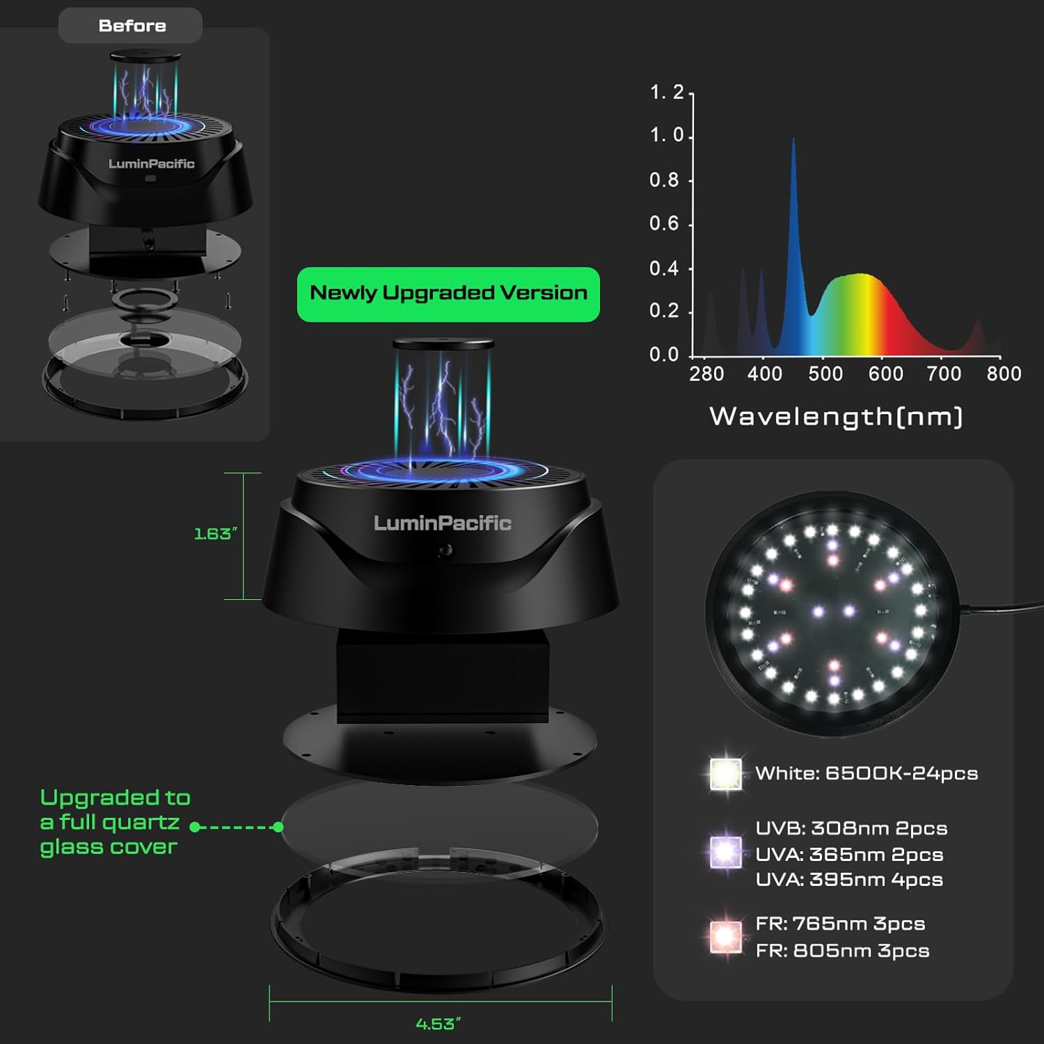 Energy-Efficient and Long-lasting LED Technology: Our high-quality UVB LEDs have a lifespan of up to 12,000 hours, so replacement is rarely necessary. Our advanced LED technology offers a high light output while consuming very little power, helping you to save money while protecting the environment. We also provide warranty, returns and exchanges service for every LuminPacific consumer.