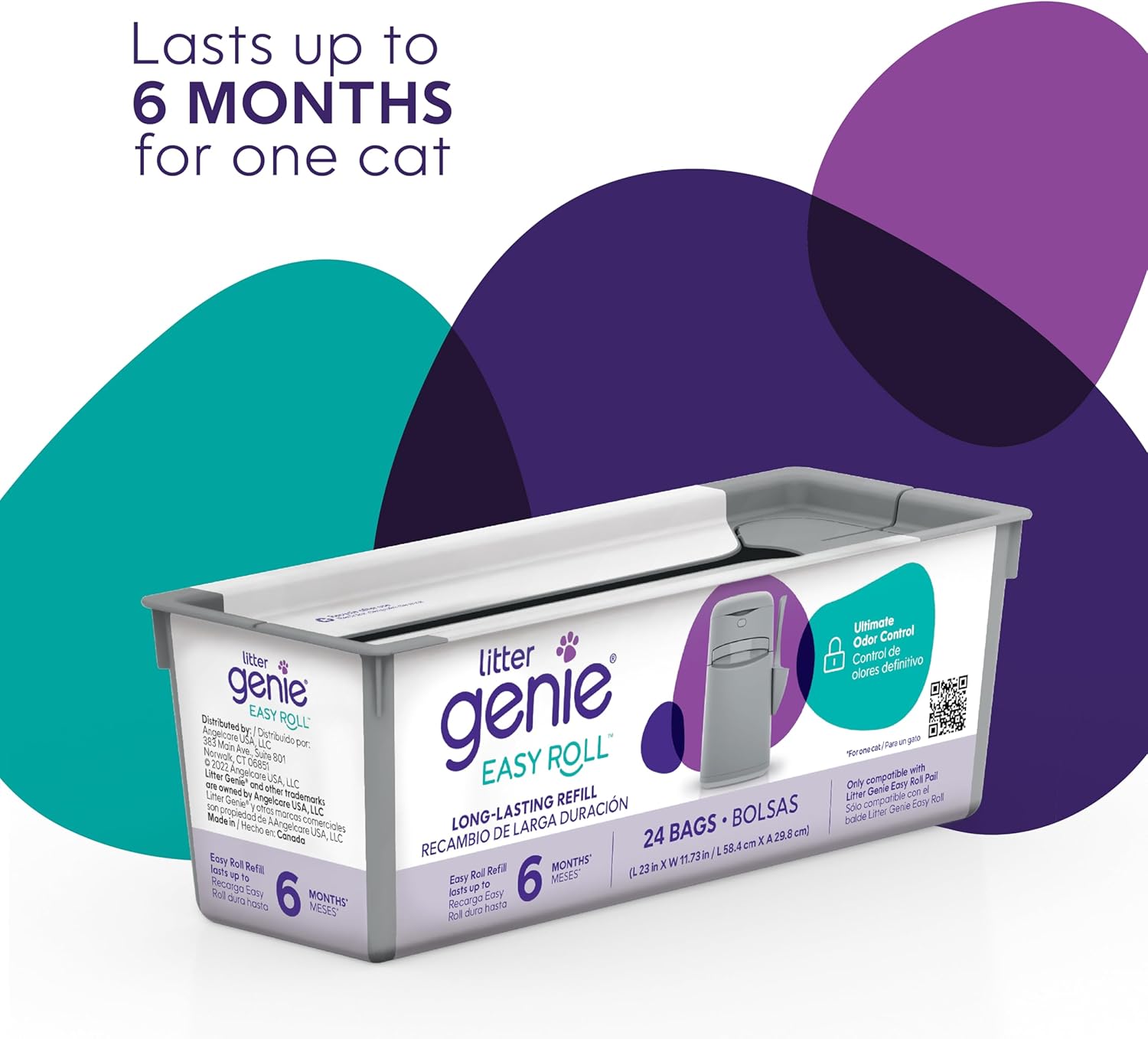 Litter Genie Easy Roll Refill Bags (1-Pack) | Up to 6 months of supply in 1 Roll of 24 tear-off Bags | Ultimate Odor Control Cat Litter Bags