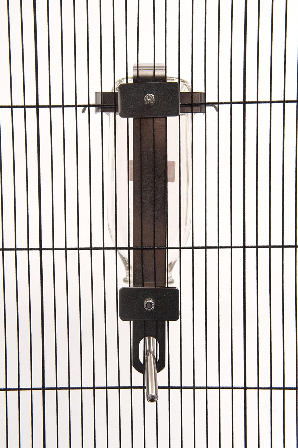 Customers find the water bottle to be of high quality, working well for various animals including bunnies and African Greys, and particularly suitable for parrots and pet rats. The bottle’s sturdiness receives mixed feedback – while the attachment is solid, some find it easily breakable. Installation experiences are also mixed, with some finding it relatively easy while others find it somewhat difficult to install. The bottle’s size receives mixed reviews, with some appreciating its great size while others find it too large for their needs. While some customers report no leakage at all, others mention a slight drip after their pets drink.