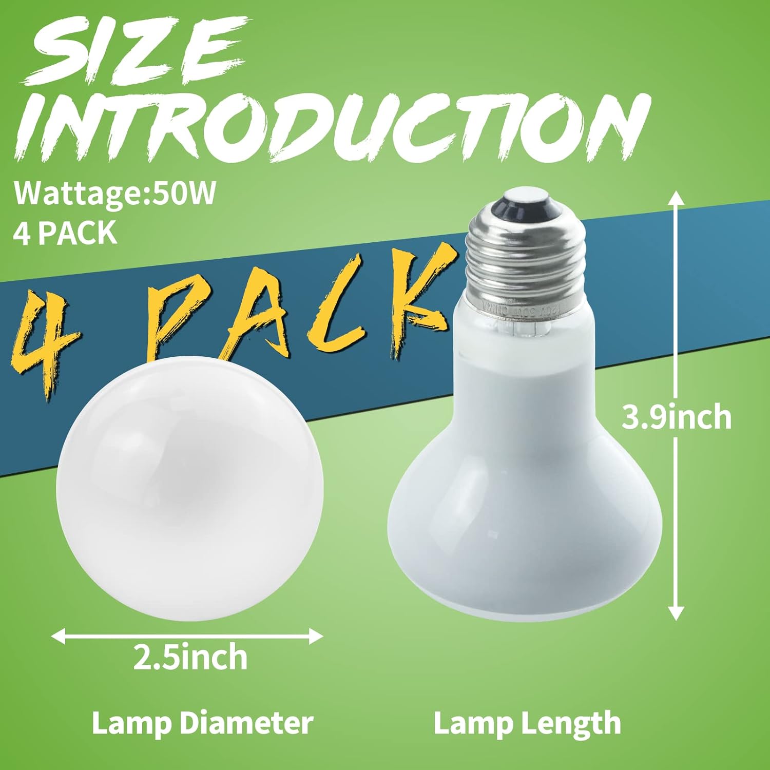 LUCKY HERP 4 Pack 50W Reptile Heat Lamp Bulb (2nd Gen), Amphibian Basking Light Bulb, Reptile Daylight Bulb for Turtle, Bearded Dragon, Lizard Heating Use