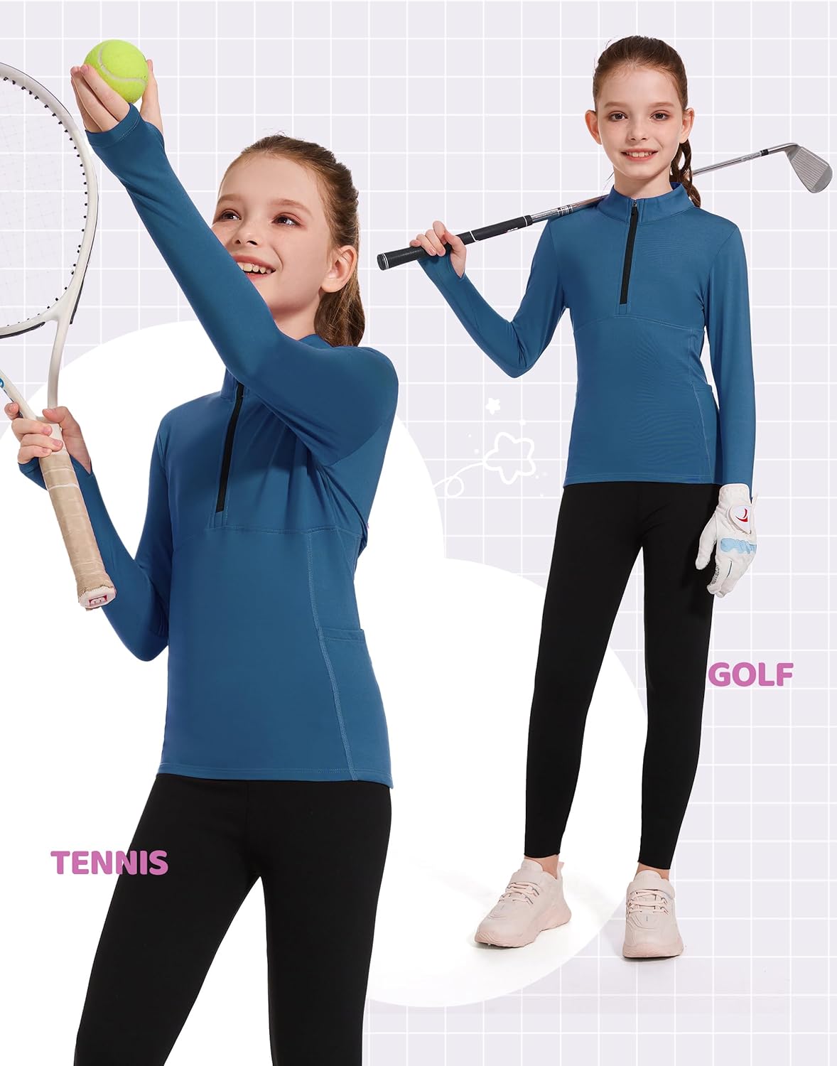 Girls Fleece Long Sleeve Shirt Half Zipper Sweatshirts Horse Riding Golf Hiking Equestrian Kids CoatGirls Fleece Long Sleeve Shirt Half Zipper Sweatshirts Horse Riding Golf Hiking Equestrian Kids Coat
