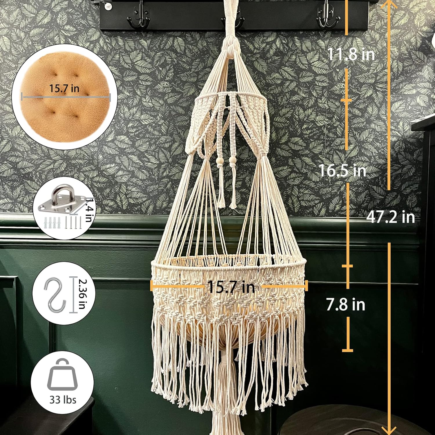 Macrame Cat Hammock – Boho Wall Hanging for Indoor Outdoor Home Decor, Pet Hammock for Sleeping, Playing and Lounging