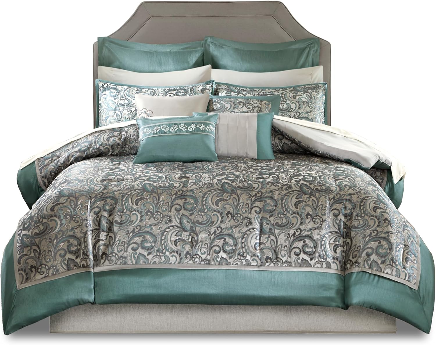 13 reviews for Madison Park 24 Piece Faux Silk Paisley Queen Comforter Set with Matching Curtains, Down Alternative Hypoallergenic – Teal, Queen (90 in x 90 in)