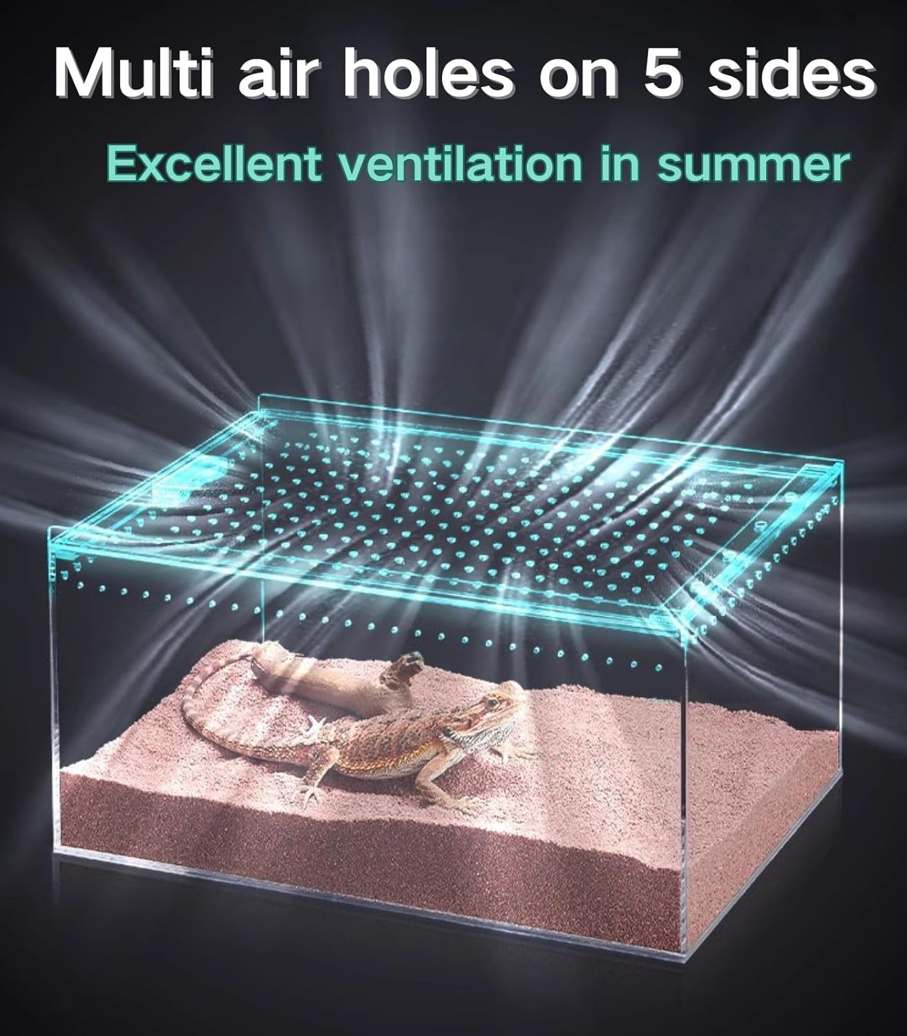 ✅ EXTRA LARGE SIZE: Our reptile tank measures 12*8*6 inches, larger than most cages, making it suitable for geckos, spiders, scorpions, and larger reptiles like bearded dragons, adult turtles, crayfish, large catfish, and adult frogs. It’s the ideal tortoise habitat or lizard tank for bigger pets.