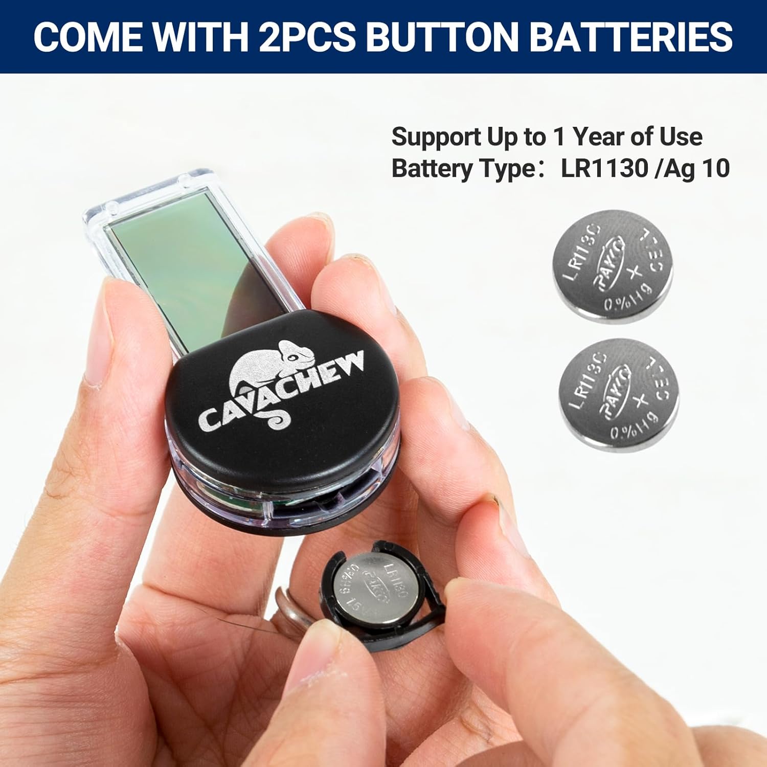 Long-Lasting Button Battery Power: Our reptile tank thermometer come with 2pcs button batteries(Battery model:LR1130/Ag 10), no frequent charging and no cluttered cables, energy efficient and stable output, easy battery replacement, 2 batteries can last more than 1 year in total, very affordable for temperature and humidity monitoring of your reptiles
