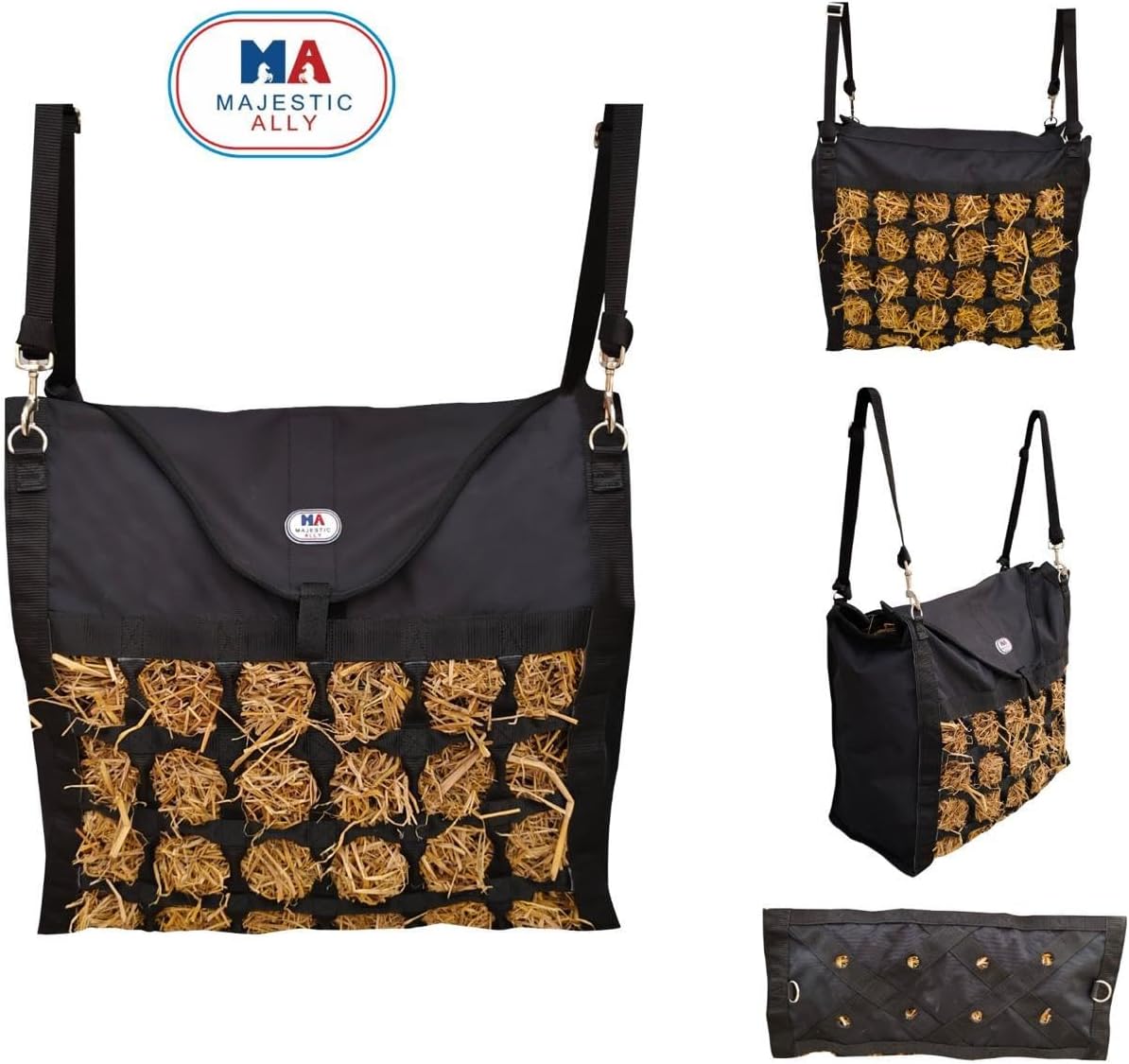 2 reviews for Majestic Ally Animal Health Hay Bag for Horses, 2.5″ Holes, Top Load, Travel Feeder, Reduces Waste, 1 Year Warranty, Multiple Colors (Black-Black)