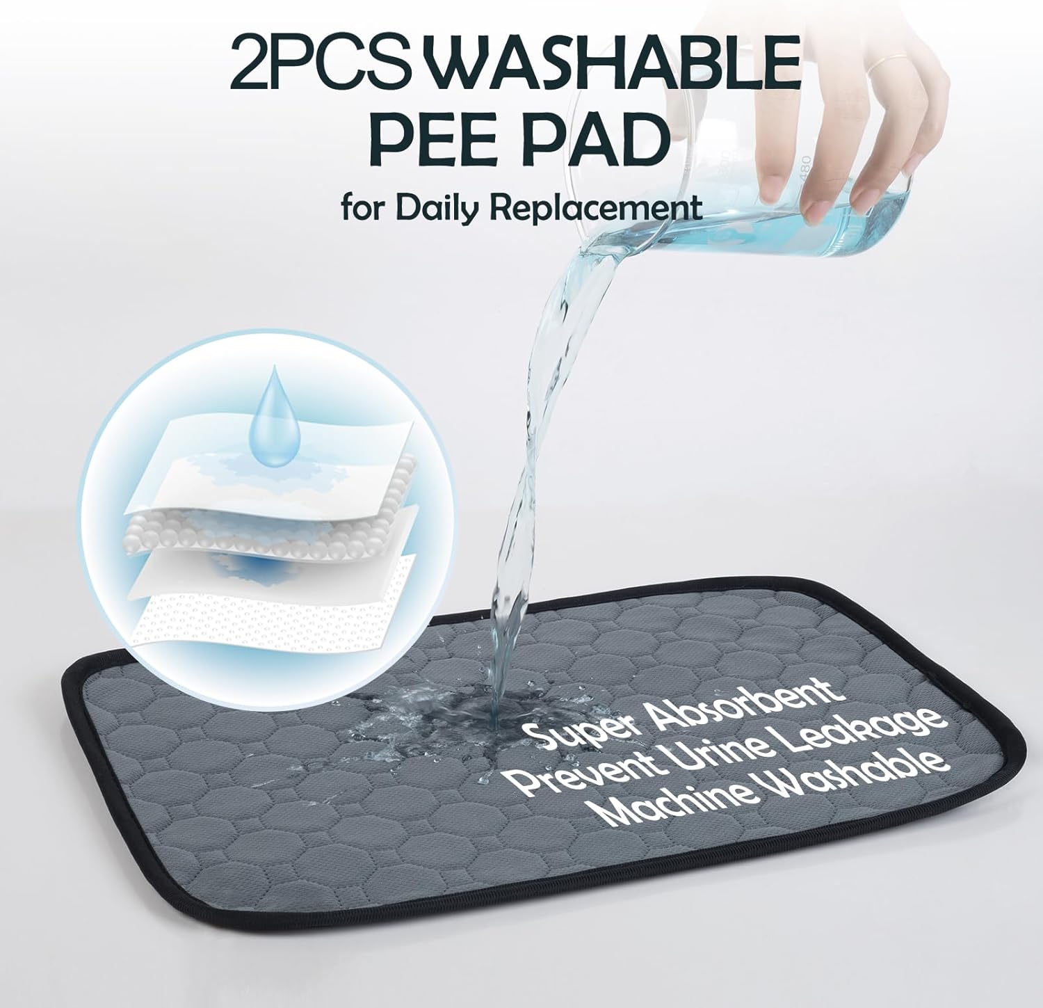 Ultra-Absorbent & 2pcs Washable Pee Pad for Replacement : Quickly absorbs urine with leak-proof surface.Machine-washable.