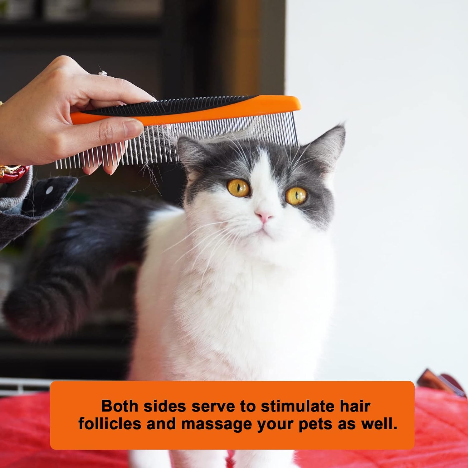 ✅ 【STURDY AND DURABLE】The teeth is made of high quality stainless steel, and the grip is made by advanced coating process, so that this cat comb is durable, corrosion resistant and will not fade, good for avoiding static electricity.