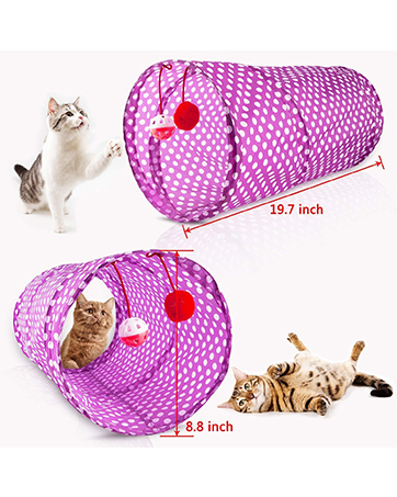 We just adopted a kitten (Leia) into a house with two adult cats and a dog. I wanted a tunnel mainly so that my kitten would have a place to play that felt secure. I was originally going to just buy a tunnel, but then I saw this. My older cat Zoe LOVES new toys, and it came with more than enough for both cats (my other adult cat, Alex, is too dignified to play with toys, apparently). The tunnel is smallish, but it’s just right for a kitten (or maybe a petite adult cat). The toys range from dollar store quality (which isn’t a complaint, that was about what I was expecting) to actually pretty surprisingly sturdy. You get enough of a variety to make up for any that are less-than-perfect, though. Between Leia and Zoe, they’ve played with everything that came in the bag. Plus, it helped them bond a bit. Mind you, they don’t actually play together (Zoe would be mortified if I allowed the internet to believe that she actually LIKED the kitten), but Zoe plays in the vicinity of the kitten, and that’s progress! 😀 Long story short, it’s totally worth the price, and I would absolutely buy it again.