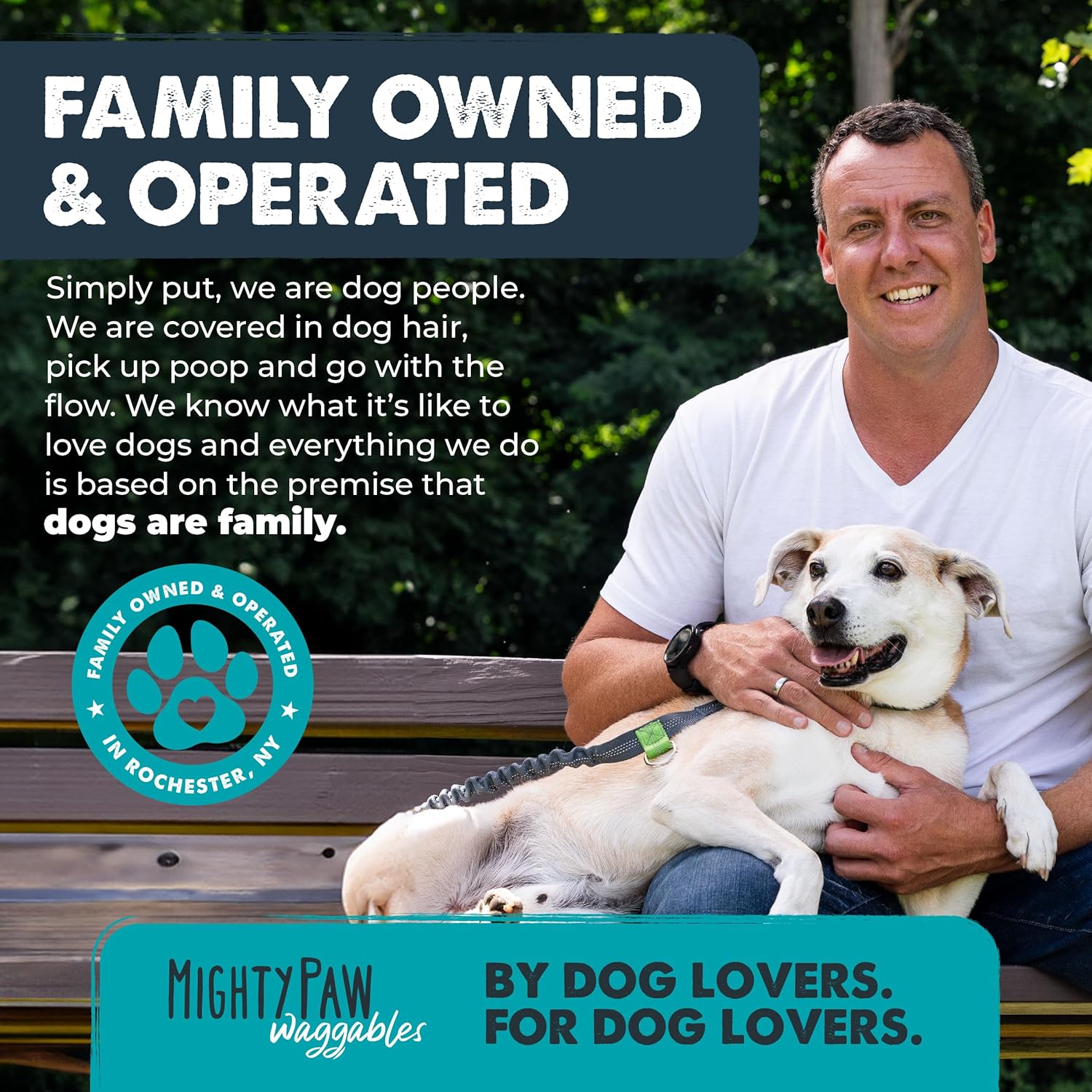 Owned and Operated in Rochester, NY: Here at Mighty Paw we are dog people, just like you. We know as a pet parent you refuse to settle for nothing but the best for your pup… and neither do we. That’s why Mighty Paw Waggables are made right here in the USA!