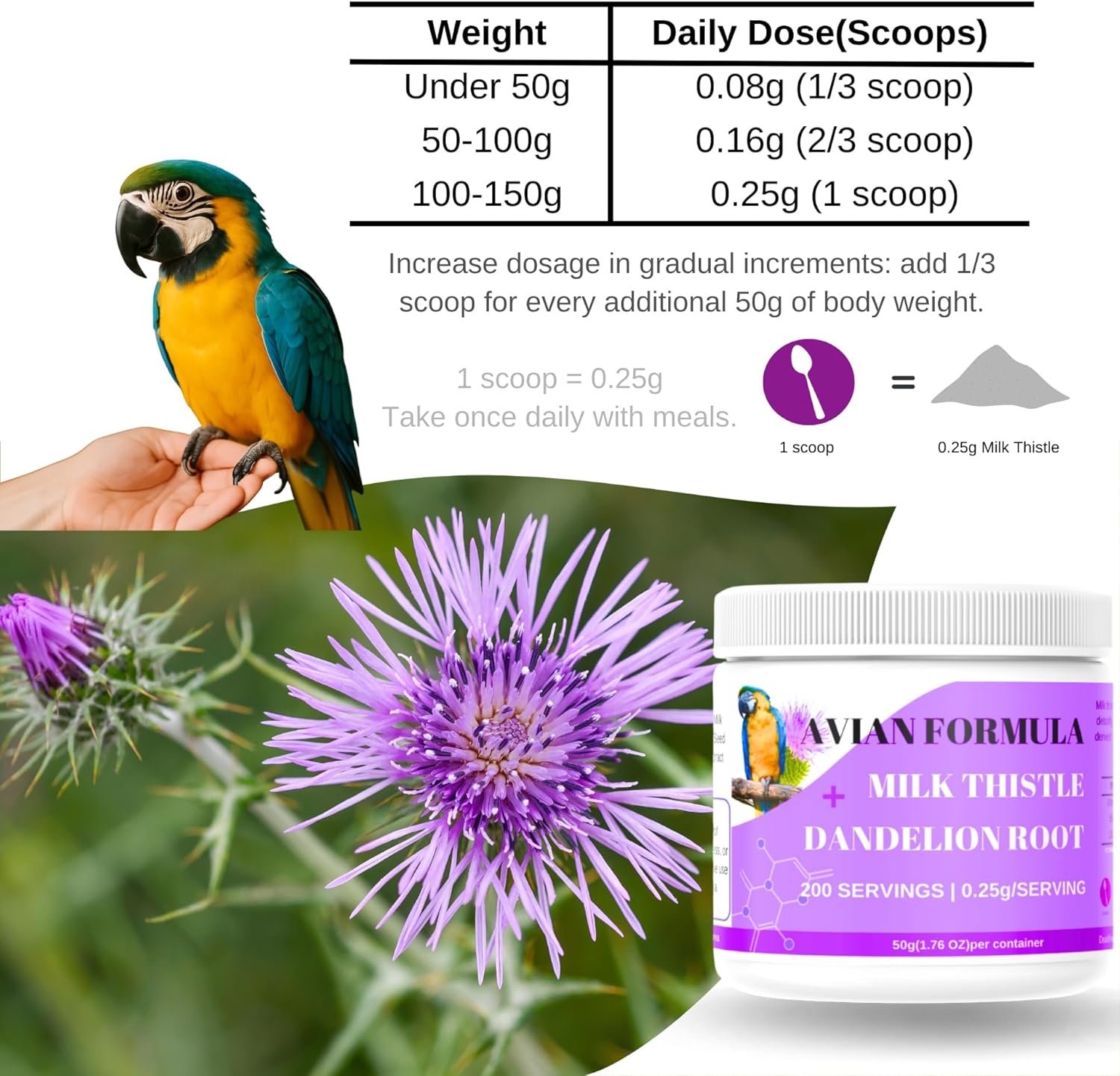 Supports Liver Detox & Health: Enhance avian vitality with our veterinarian-formulated Milk Thistle & Dandelion Root Powder. Scientifically blended to support liver detoxification, improve digestive health, and boost immune function in parrots.