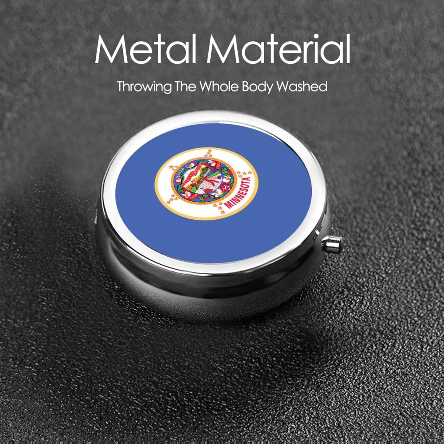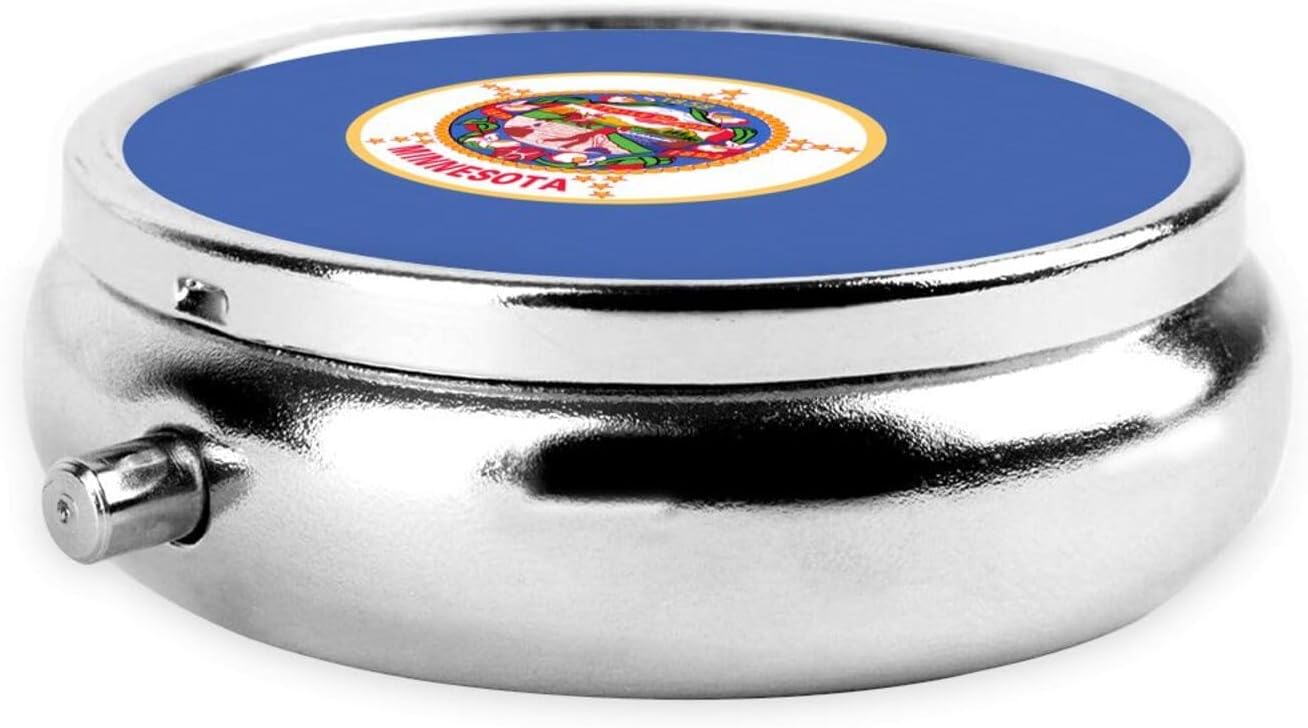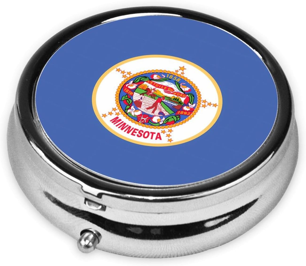 Minnesota State Flag Stay organized and stylish with this Round Pill Box – a portable medicine storage container perfect for vitamins, supplements, fish oil, and more. Designed with a full-print exterior, this pill box is not just functional but also a fashionable addition to your daily routine. Made from durable electroplated metal iron, it offers a premium feel and long-lasting performance.