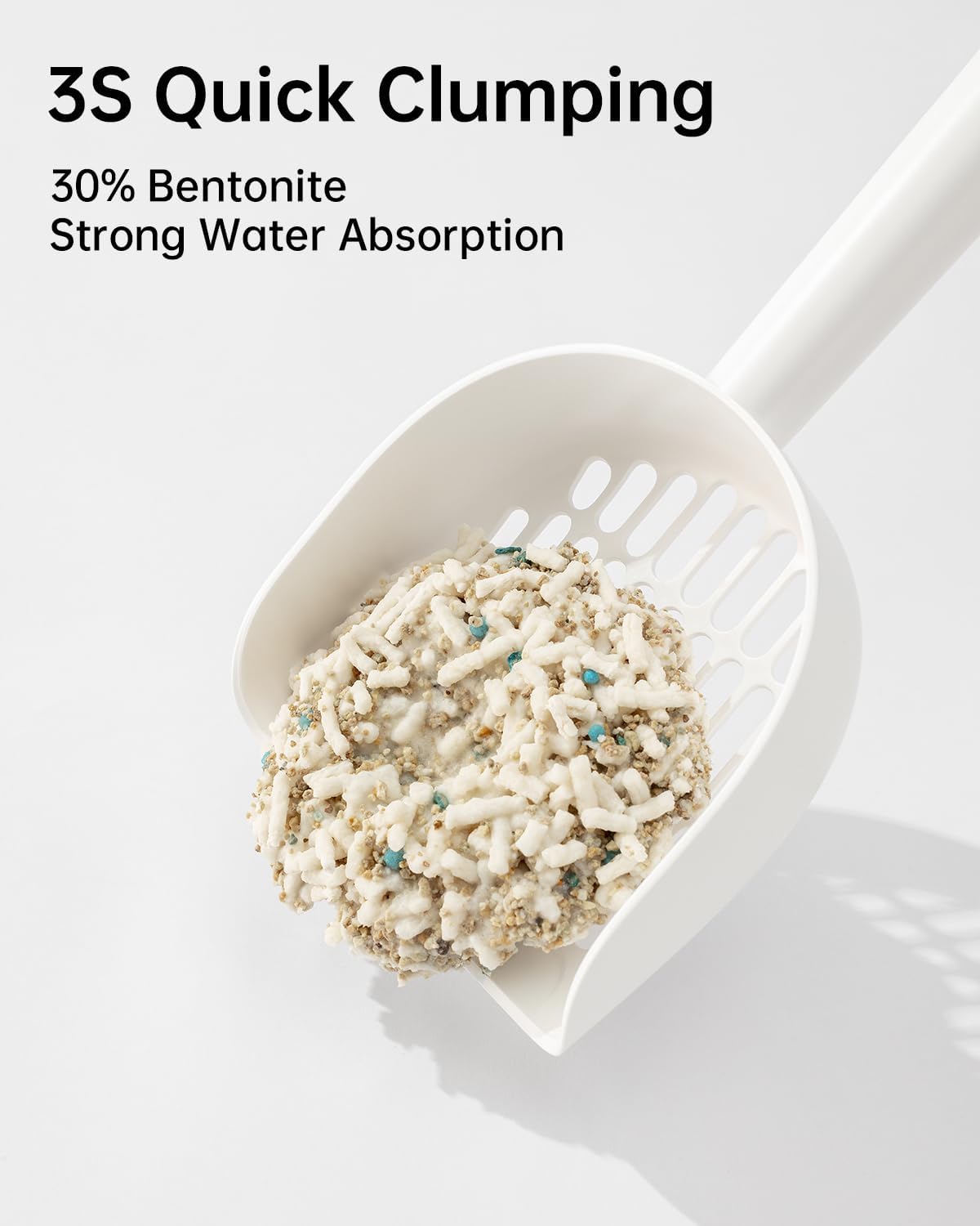 【Strong Clumping and Easy Scooping】Tofu, Cassavia, and Bentonite cat litter, all three in one bring 3s fast clumping + 2s water absorption, and thanks to cassava for helping with non-sticky and easy to scoop.