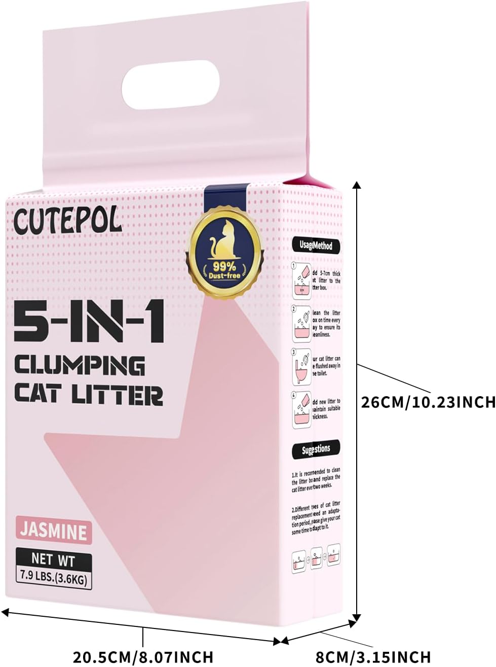 【Vacuum Packing for Better Storage】All Cutepol cat litter is vacuum package in regular shape and small size (7.9 lbs per bag), easy to store and carry, and no need to worry about moisture.