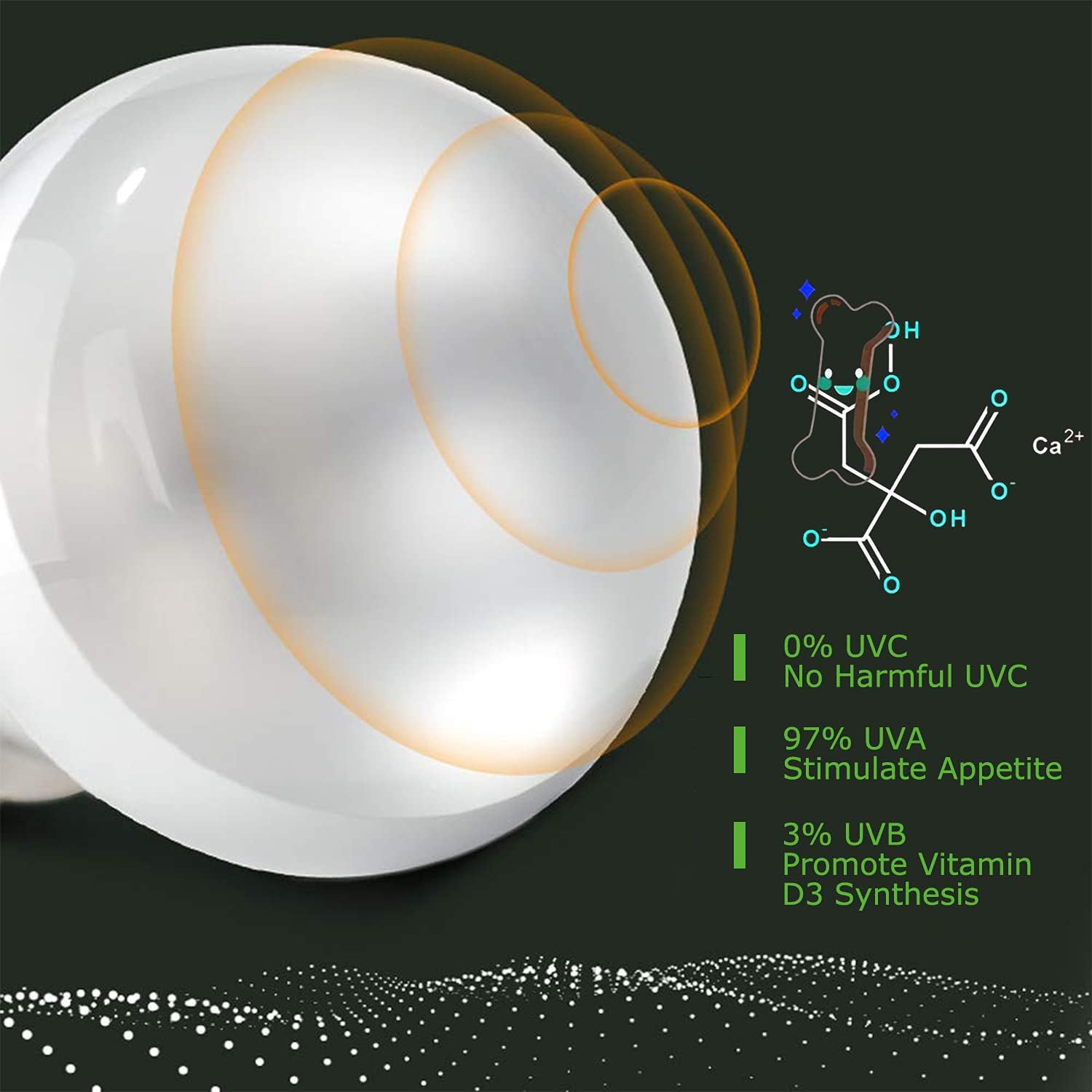 SUITABLE FOR REPTILE & AMPHIBIAN – Our heat light bulb provides animals warmth & vitamin production necessary for health. Ideal for bearded dragons, tortoises, turtles, geckos, snakes (pythons, boas, etc.), iguanas, lizards, chameleons & more. An excellent reptiles bulb!